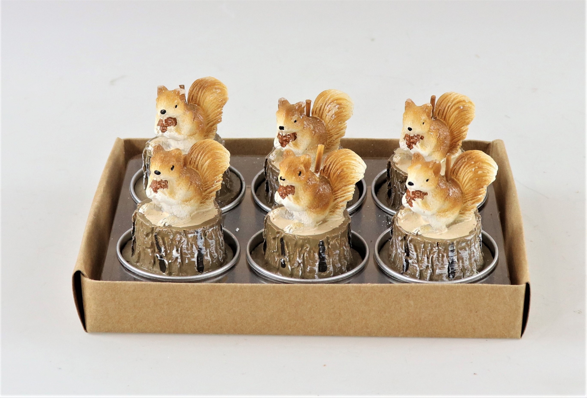 ENDiscover the wonderful world of winter romance with our fascinating "Squirrel" tea lights for the Christmas season. These wonderful candles, in a charming set of 6, are a must-have for any retailer who specialises in home and lifestyle and wants to offer their customers something special. With item number: 3125, these tea lights will not only add a touch of exclusivity to your range, but will also enhance your sales area.