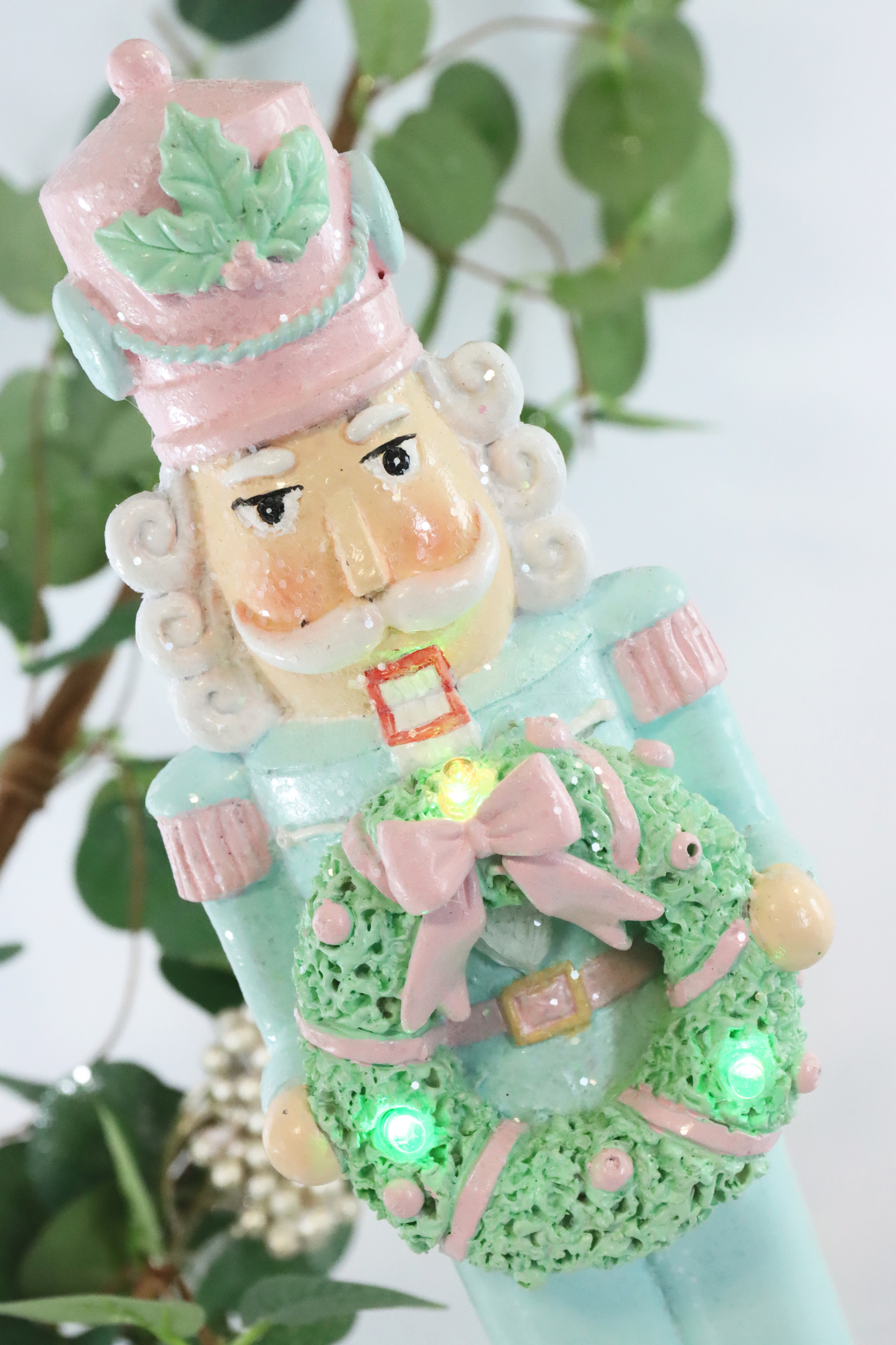 These unique handmade nutcracker LED figures in pastel turquoise and pink are approximately 31 cm high and battery operated. They bring a fairytale Christmas atmosphere into your home or business and can be used as eye-catchers on tables, shelves or in shop windows.