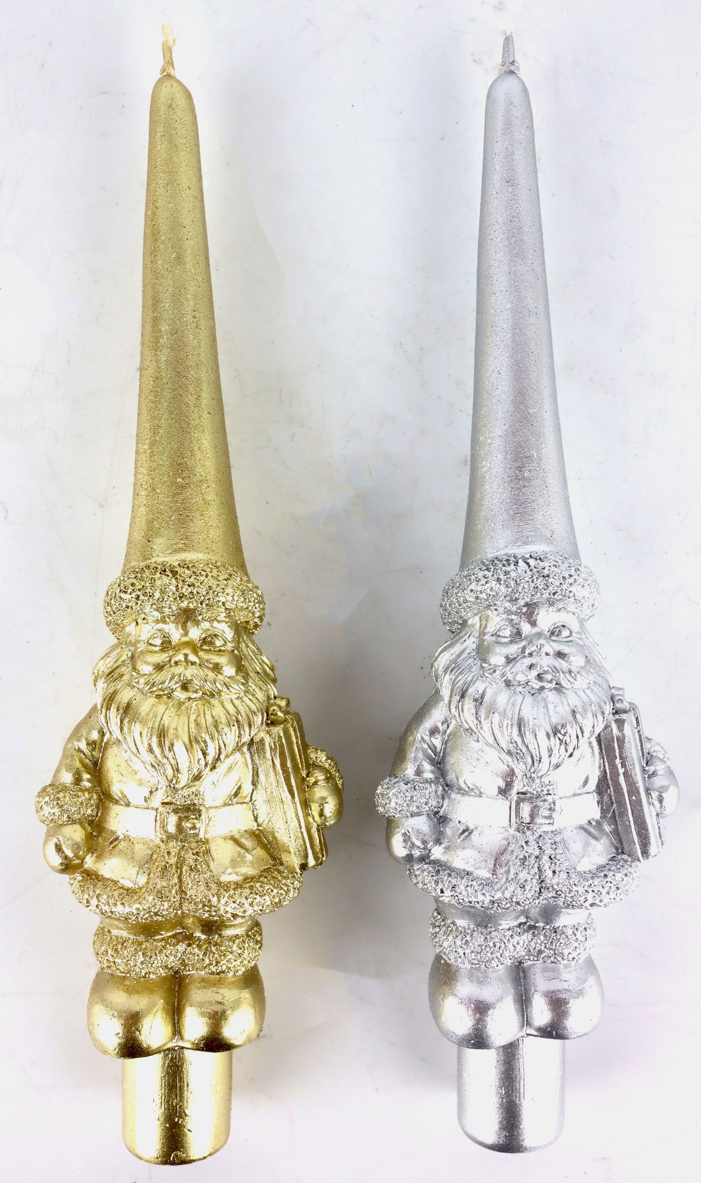 This 2-piece set consists of finely crafted stick candles in the classic Christmas colours of gold and silver. Each candle is around 20 cm high and made from high-quality candle wax, making them a durable and decorative element for the modern living area. The detailed design in the shape of Father Christmas not only makes children's eyes light up, but also adds a festive touch to any room.