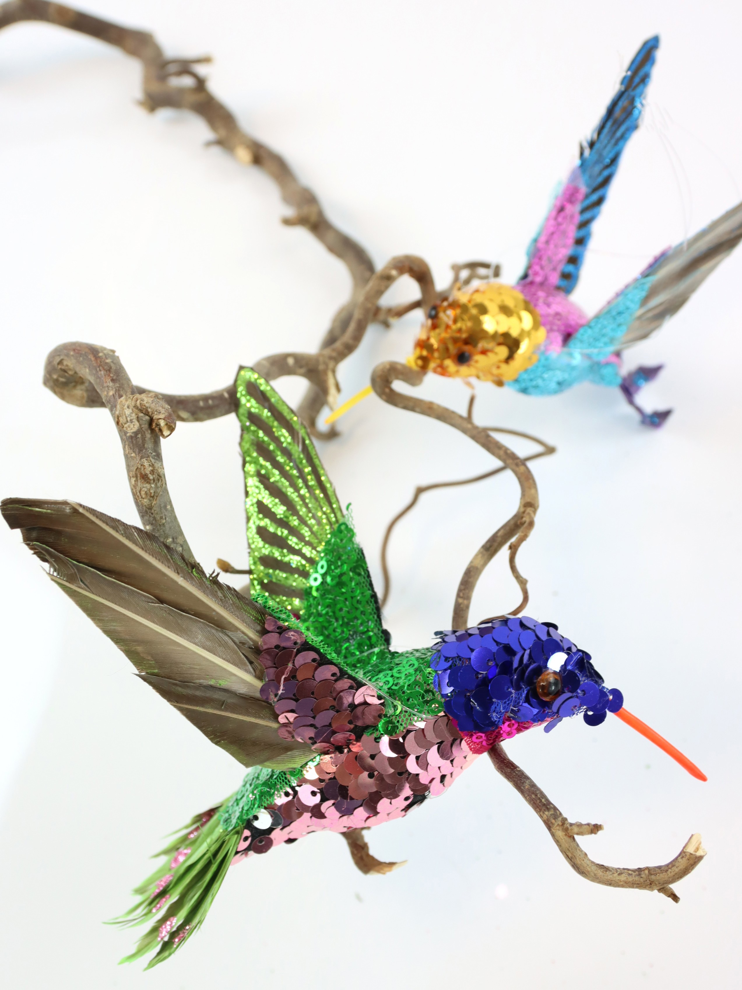 The "KOLIBRIS 'SPARKLE WINGS'" are not only a visual highlight, but can also be used in a variety of ways. Whether as table decorations, window decorations or creative additions to your seasonal shop window presentations - these hummingbirds are guaranteed to attract everyone's attention. Thanks to the high-quality workmanship and bright sequins, they are particularly durable and retain their brilliant colours even when exposed to sunlight.