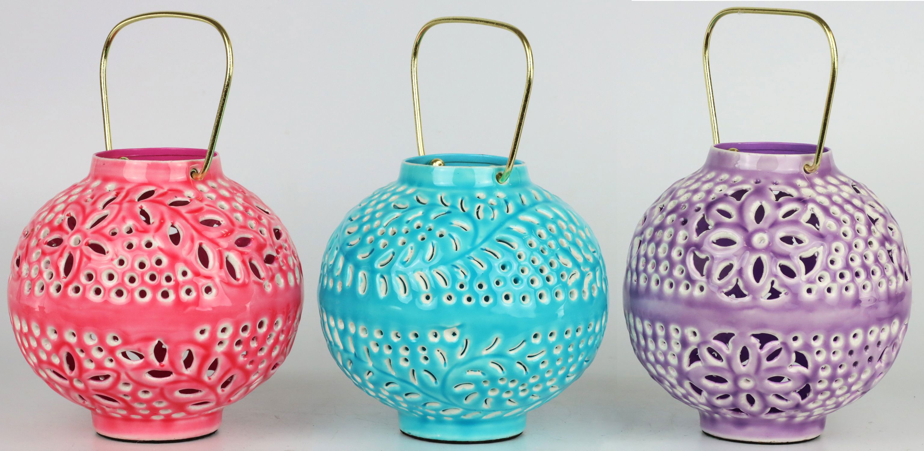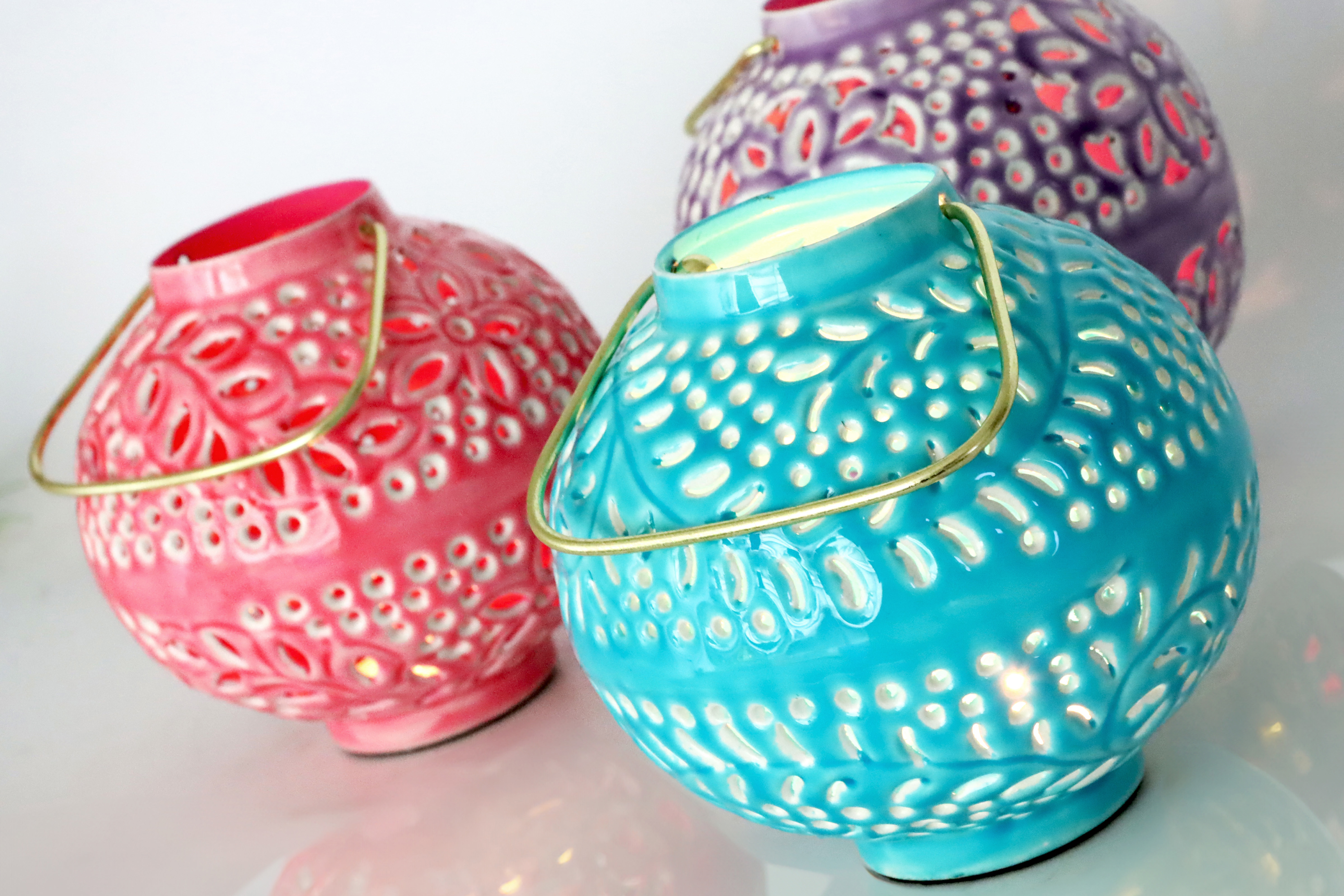 - **Three-piece lantern set:** Set consisting of three lanterns in the colours pink, turquoise and purple.