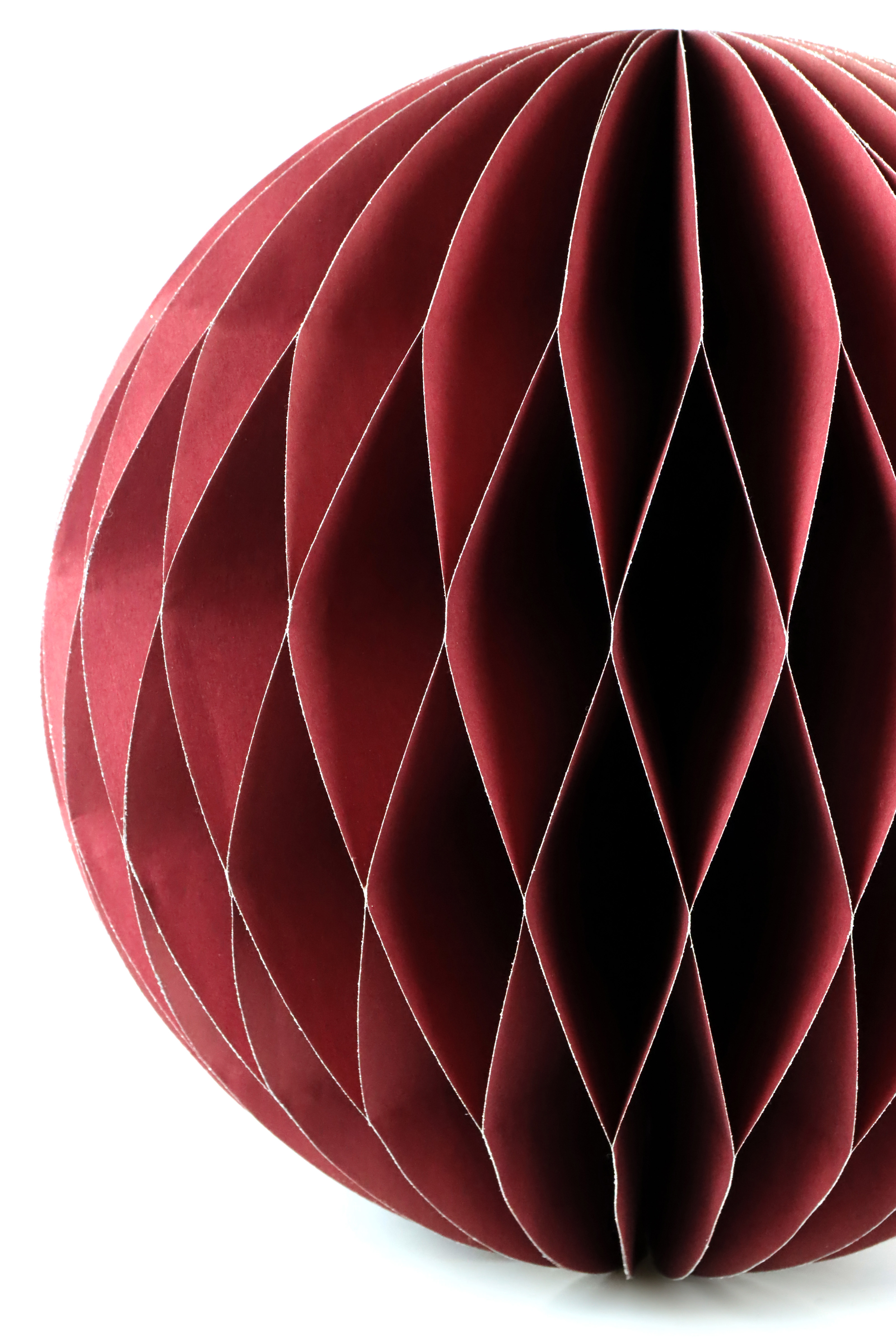 SEO-relevant keywords: DECO BALLS "HONEYCOMB" S/3, Christmas decoration, festive decoration, foldable baubles, honeycomb structure, home accessories, Christmas product, retail, item number 3777, red decorative baubles, lifestyle, paper decorative baubles.