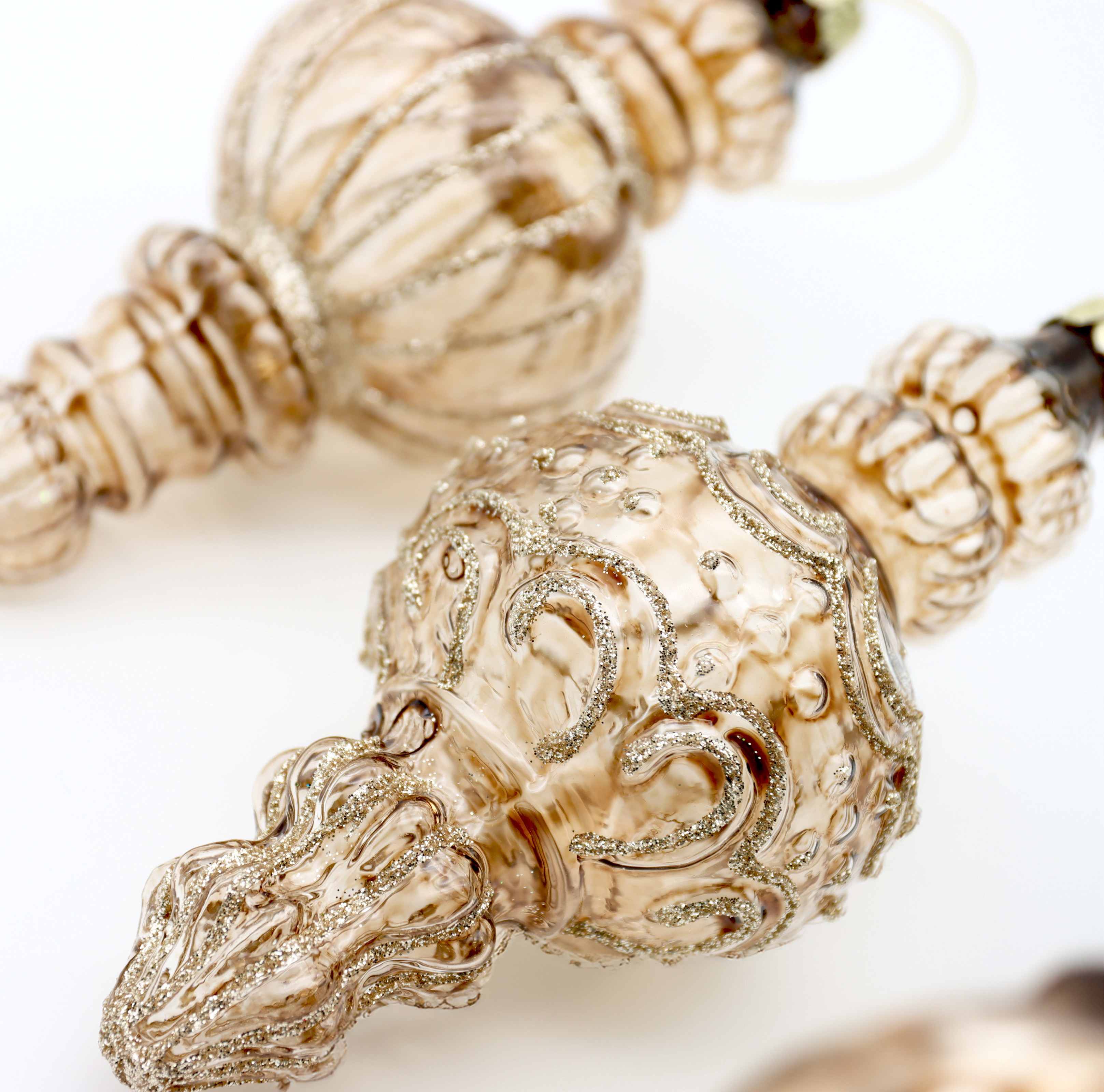 - Exclusive set: 6 oriental glass ornaments in elegant gold.