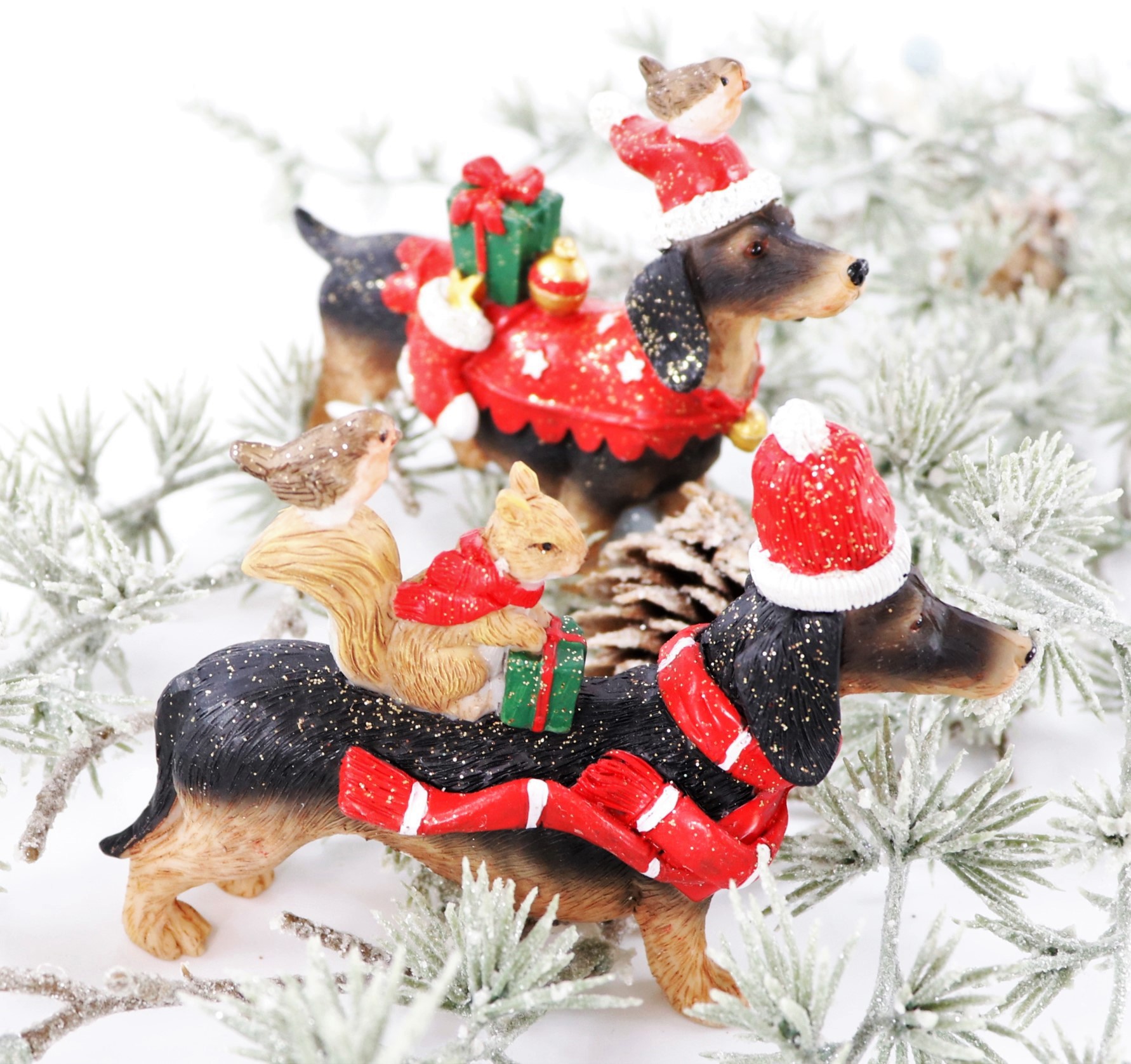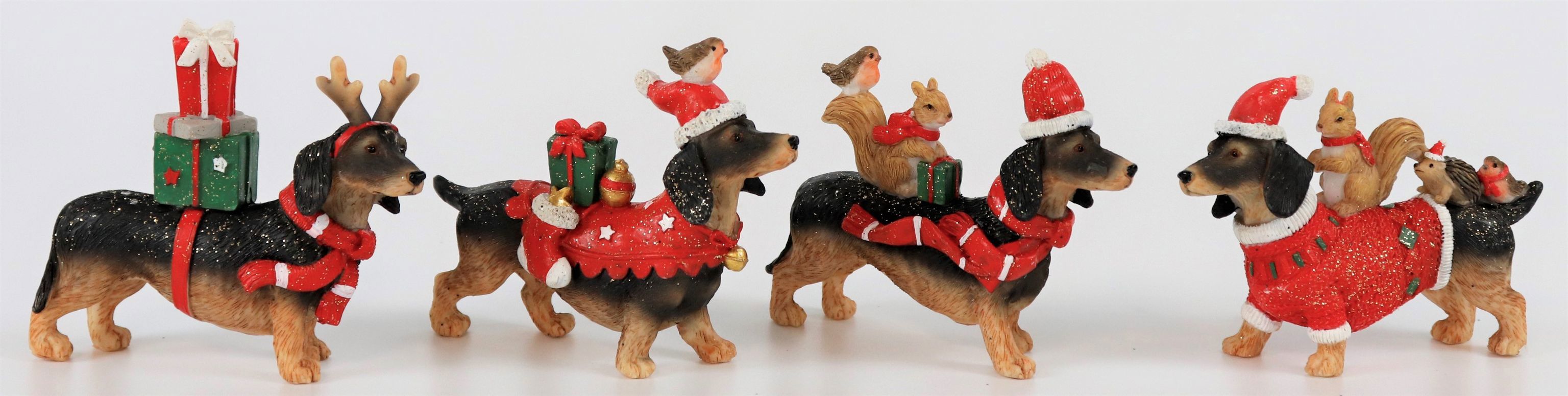 ENGive your living area a touch of charm and elegance this Christmas with our exclusive FIGURE "WALDI" S/4 product (item number 3824). This charming dachshund figurine set conveys the warmth and cosiness that are essential for the festive season.