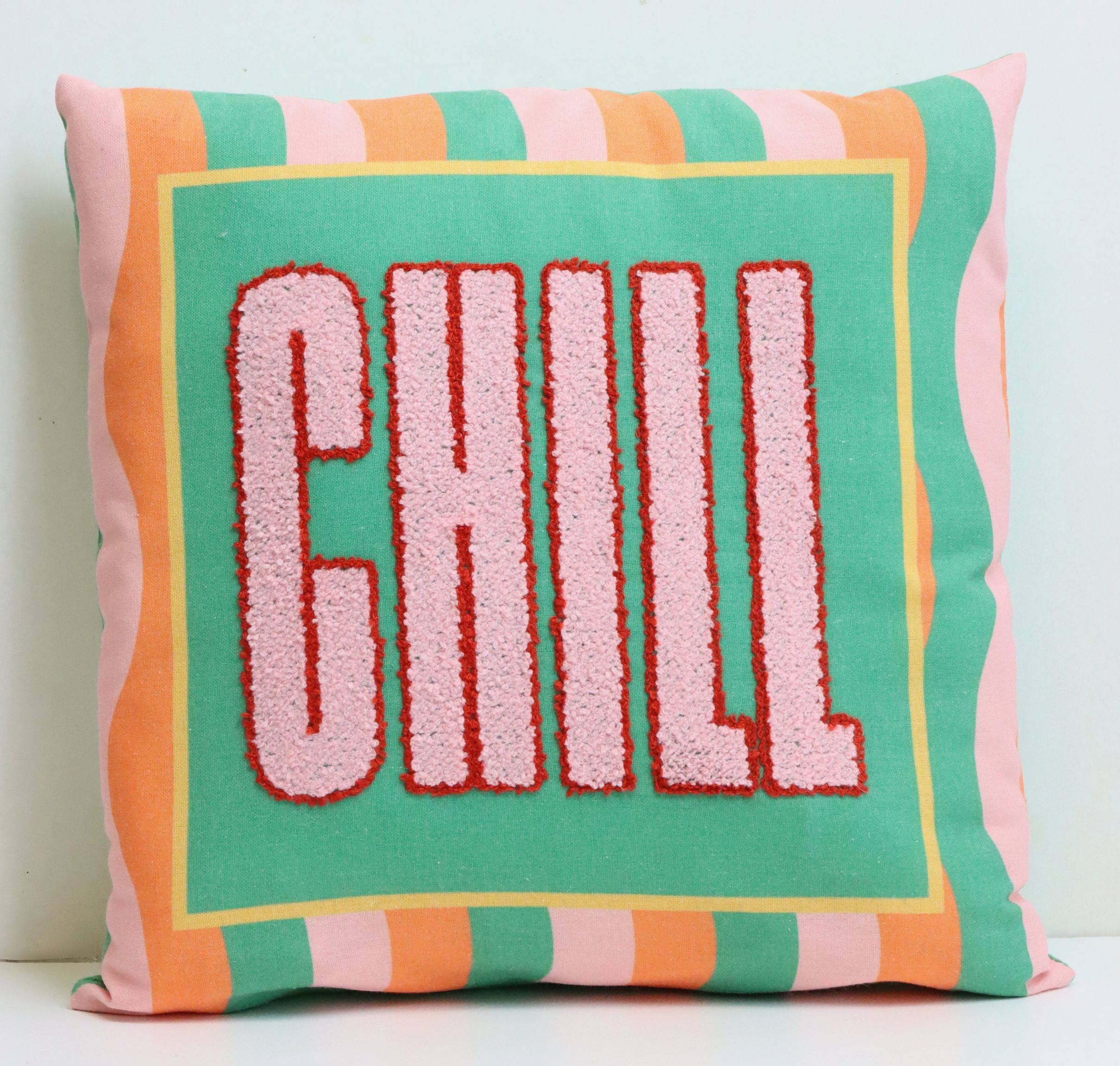 Discover the fresh and lively cushion cover "CHILL" in the size 40x40 cm - an ideal eye-catcher for any style-conscious home or trendy shop. With its modern design and vibrant colours, this cushion cover brings a touch of spring and summer into your home. Particularly suitable for stationary retail in the home and lifestyle sector, the "CHILL" cushion cover can be used to create colourful accents in any interior.