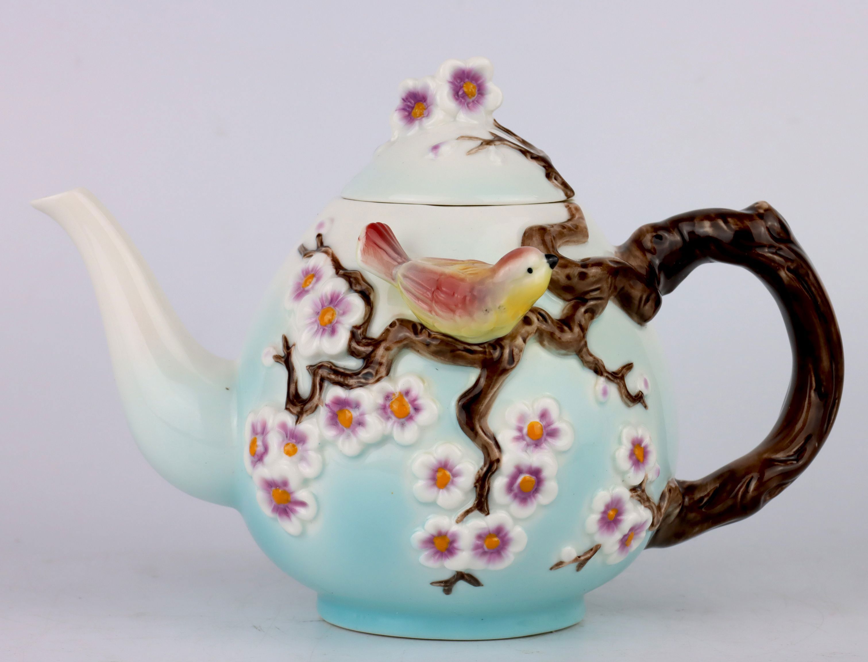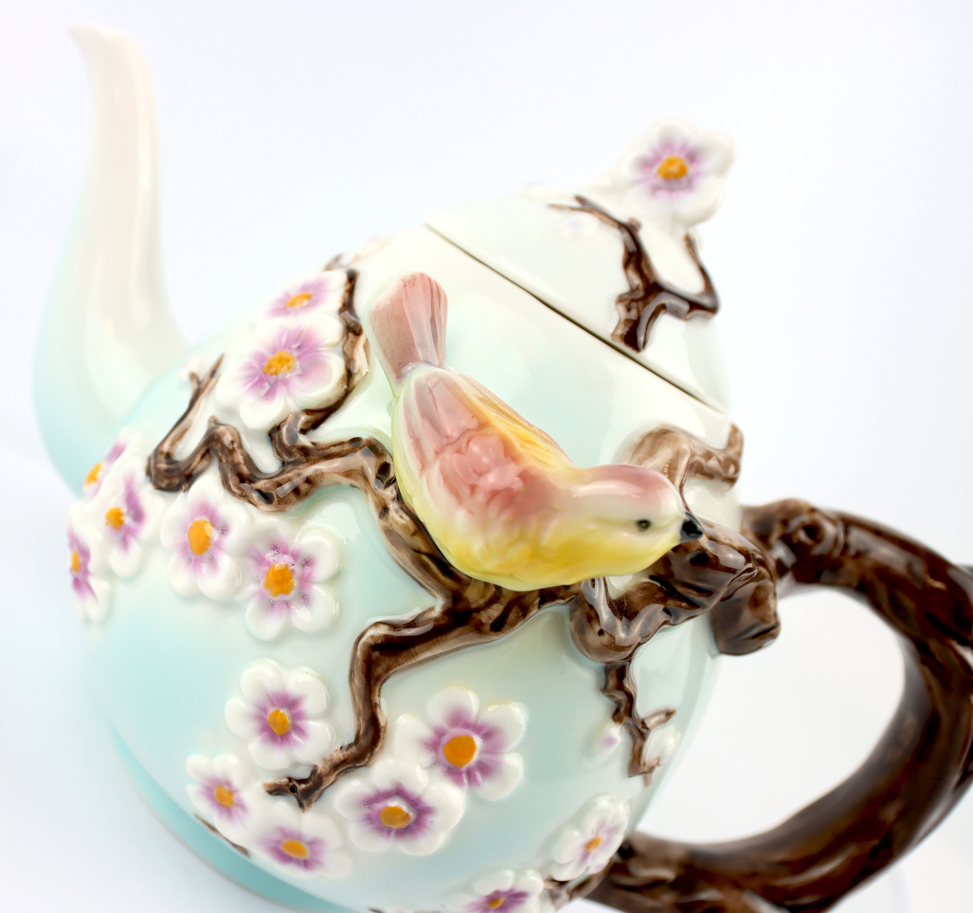 The "Blossom Delight" teapot shines in a soft blue colour and is lovingly decorated with delicate floral motifs and a graceful bird. This harmonious combination of nature and art fits perfectly into any living environment and enriches spring and summer with fresh elegance. Imagine enjoying your favourite tea and being inspired by the grace of this teapot - a real treat for all the senses.