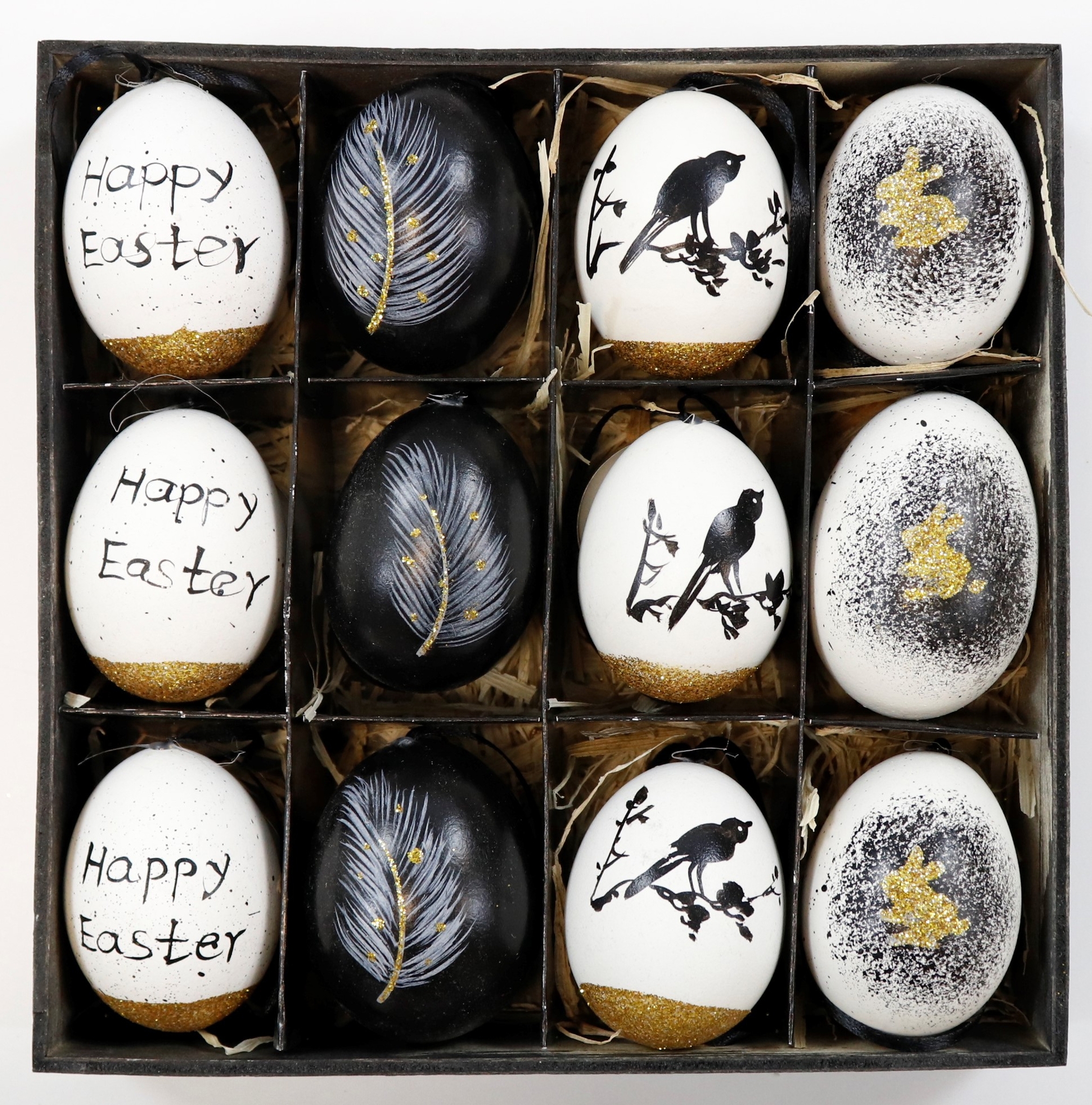- Attractive 12-piece set of real eggs for seasonal Easter decorations.