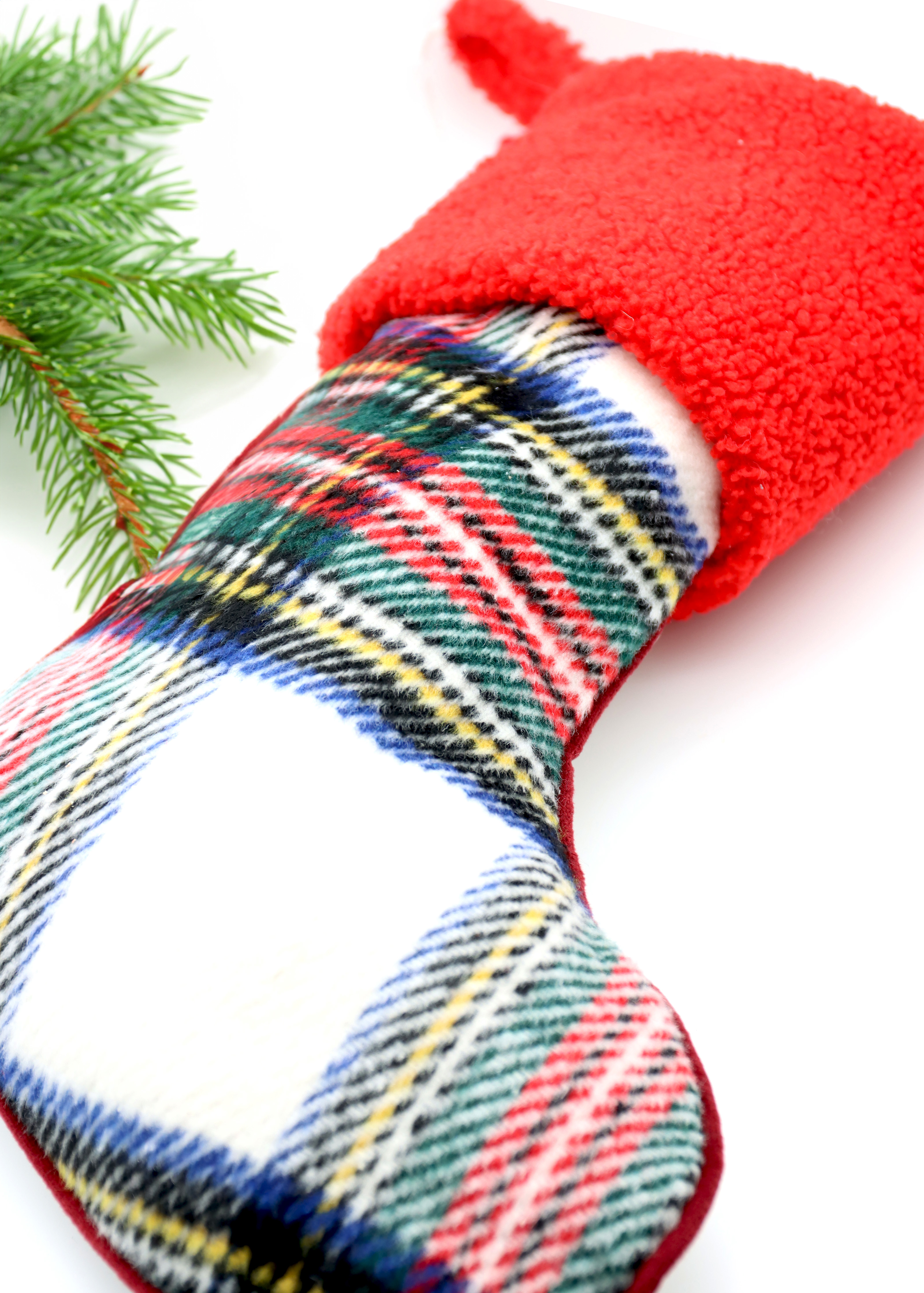 - **Clear style:** Classic tartan check pattern in Christmas colours.