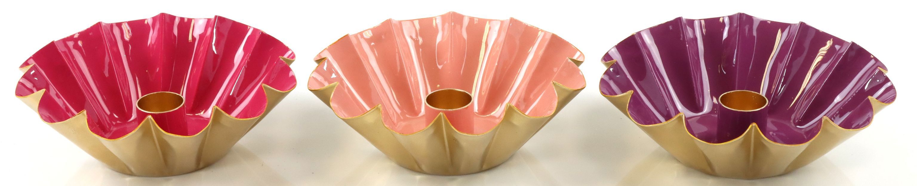 Add a touch of freshness and design freedom to your retail space with the elegant **candle bowls "Berry "**. Perfectly coordinated for the spring/summer season, this 3-piece set offers a harmonious addition to your lifestyle and living range. Each bowl impresses with its reddish metal structure, which is not only robust but also particularly stylish thanks to the enamelled surface. With a diameter of around 14.5 cm, these bowls are the ideal base for any candle and create an atmospheric ambience at the same time.