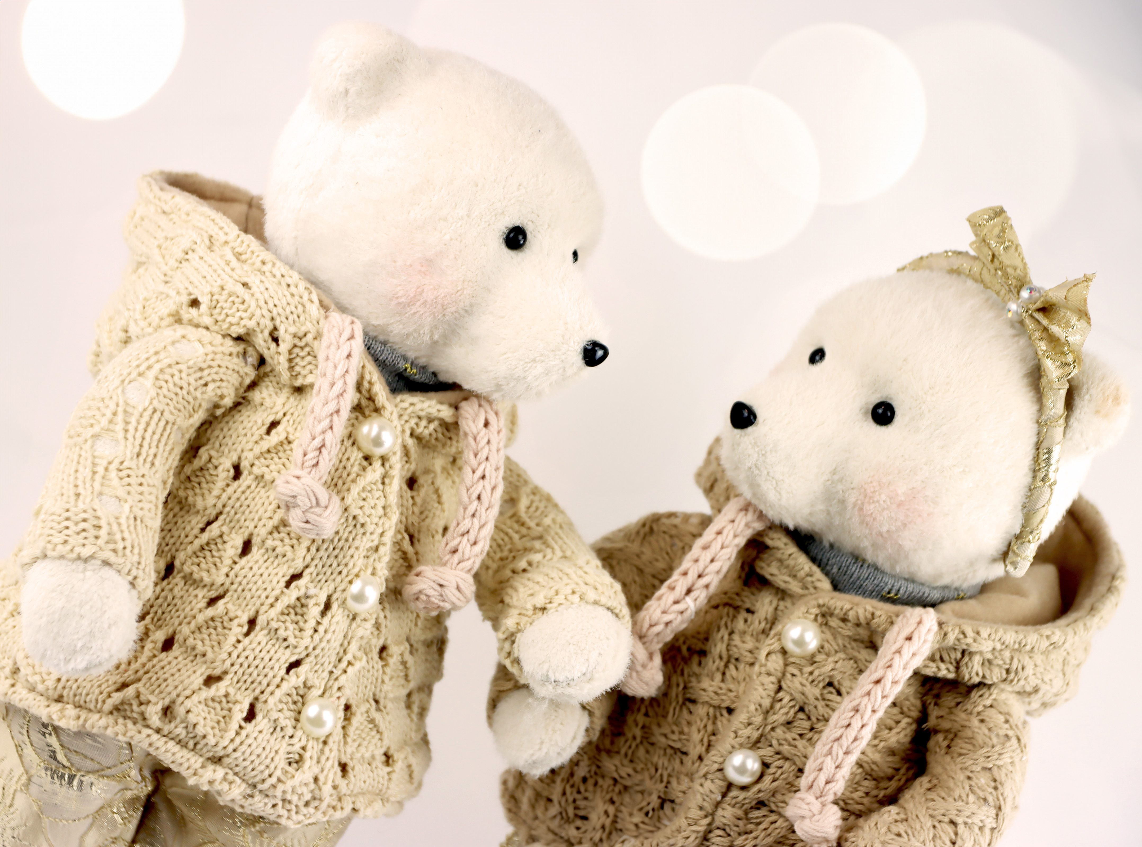 Our bears are not only visually appealing, but also durable and of high quality, so you can offer your customers a product that will bring joy for many Christmases to come. The brown knitted jumper worn by both bears is modern, yet classic enough to harmonise with different interior styles. Thanks to their thoughtful colour scheme, they fit into a variety of Christmas decoration themes, from traditional to modern.