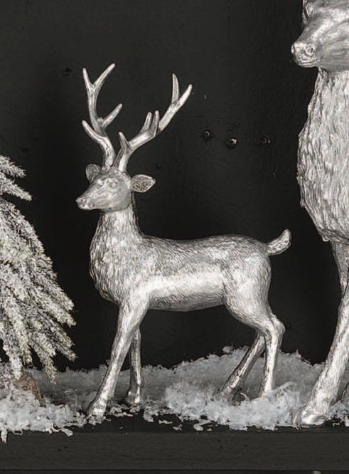 The exclusive polyresin material offers a detailed representation and stands for durability and quality. The silver lustre reflects the light perfectly and makes the stag shine particularly brightly in an atmospheric setting. Place the stag skilfully in your salesroom and it will certainly arouse the interest of your customers. This decorative figure is ideal for giving your shop a particularly festive atmosphere or for use as a highlight in themed displays.