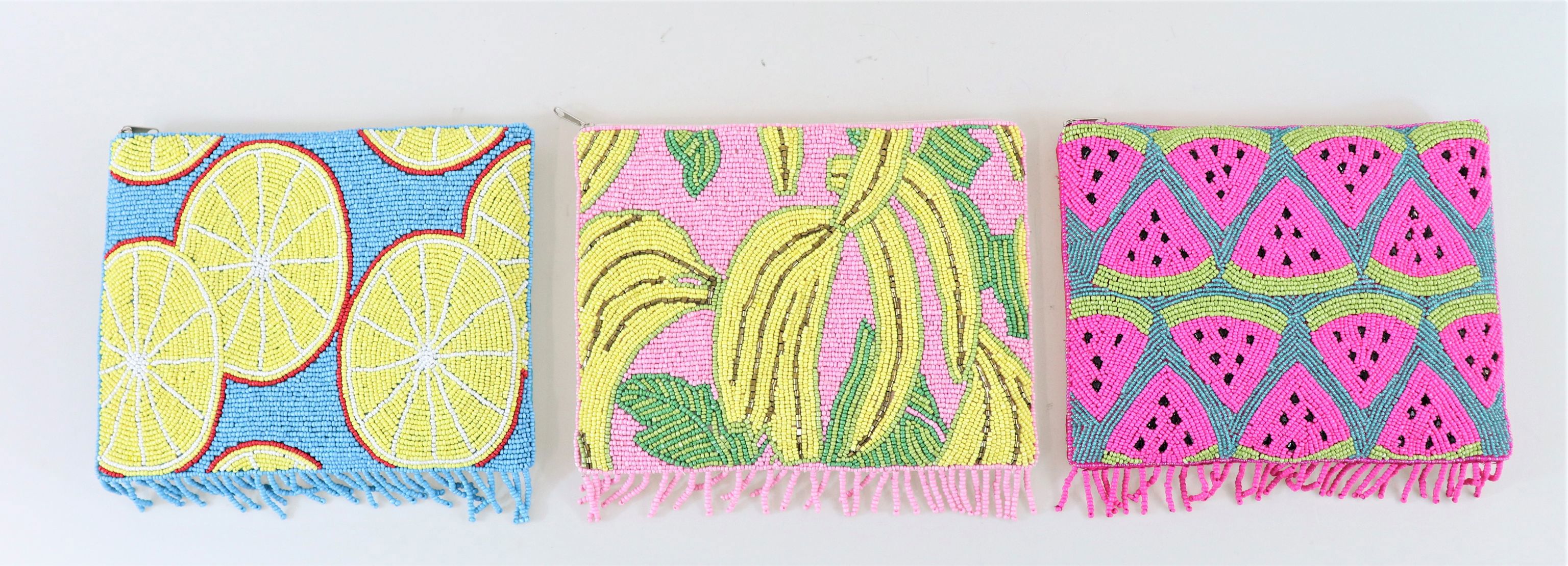 These clutches set accents with their detailed workmanship, high-quality beading and fruity design. The sophisticated styling with fruity motifs is perfectly matched to the spring/summer season and brings a colourful flair to any shop. Measuring 23x17 cm, they are the perfect addition to your everyday outfit and offer enough space for essentials.