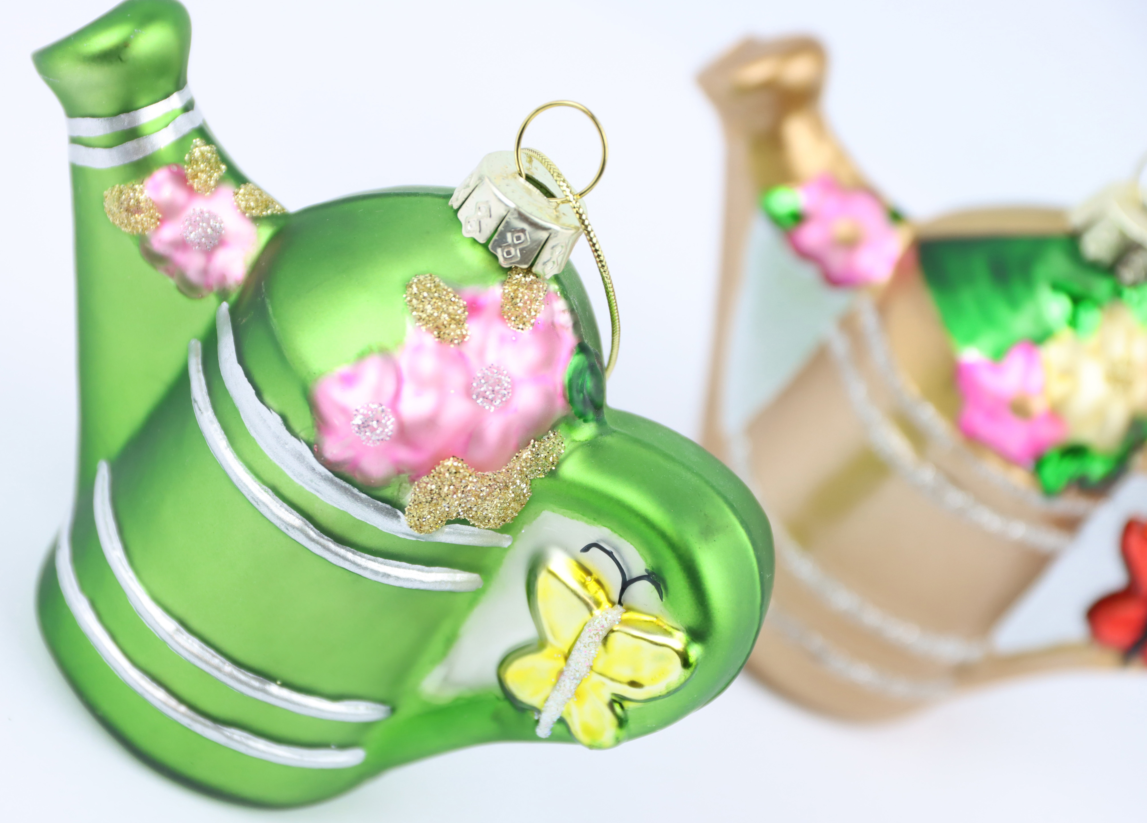 Bring a fresh touch of spring and summer directly into your home or retail store with the "Watering Can" glass jewellery set/4. This unique set consists of four lovingly designed glass ornaments in the shape of watering cans, which shine in the soft colours pink, green, brown and blue. Each watering can impresses with its filigree workmanship and the high-quality glass, which captures and reflects the light in an enchanting way.