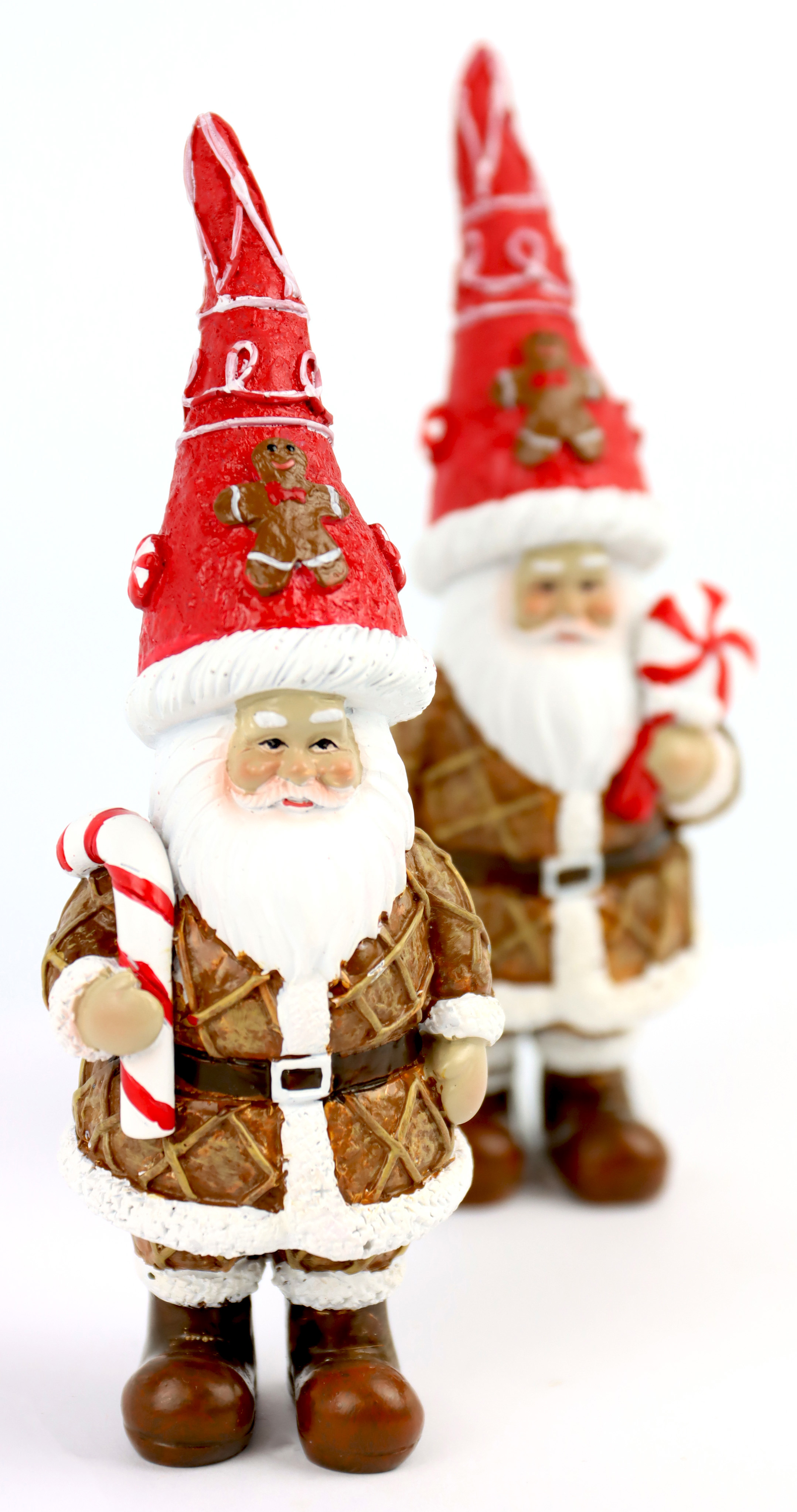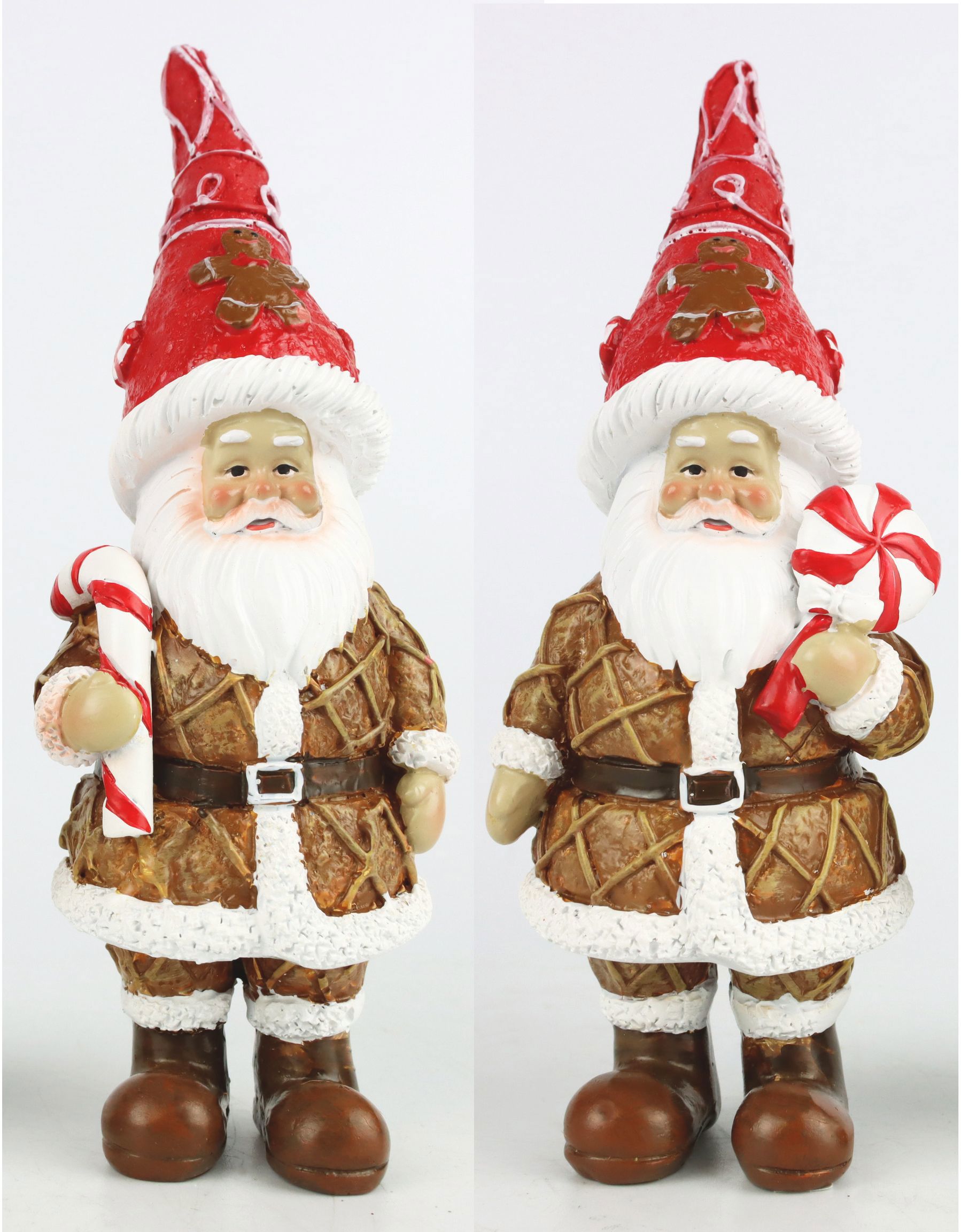 Father Christmas, known for his traditional red attire and friendly smile, is accompanied by a bright and festive candy cane - symbolising the joy and playfulness of the Christmas season. Handcrafted with attention to detail, these figurines are not only aesthetically pleasing but also sturdy enough to be used year after year. They are an excellent way to brighten up shop windows, shelves or special Christmas displays in your shop.
