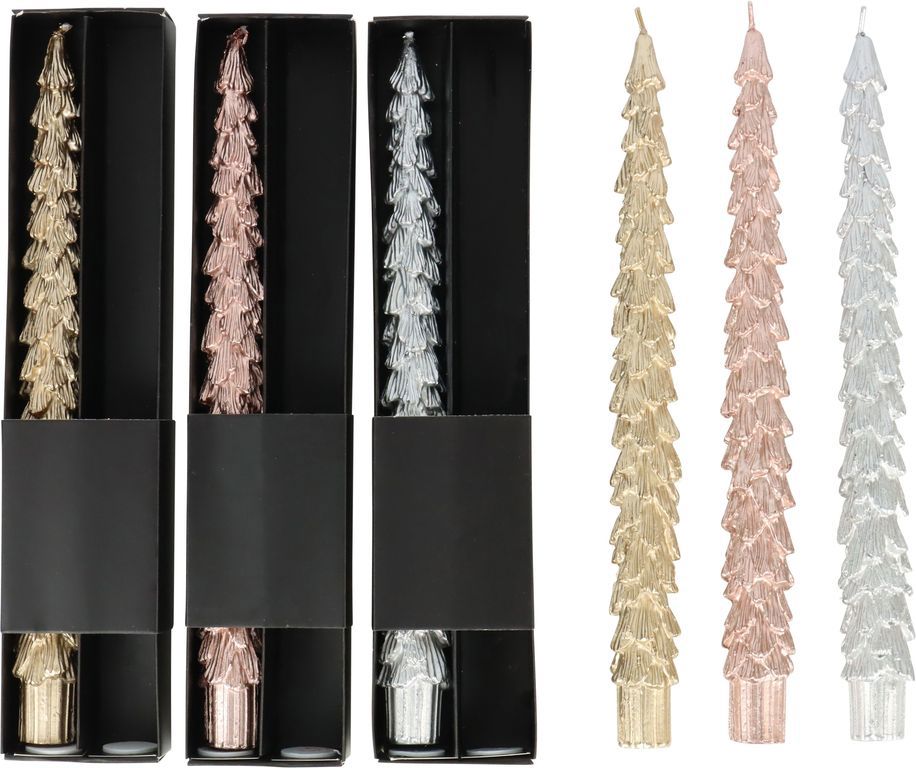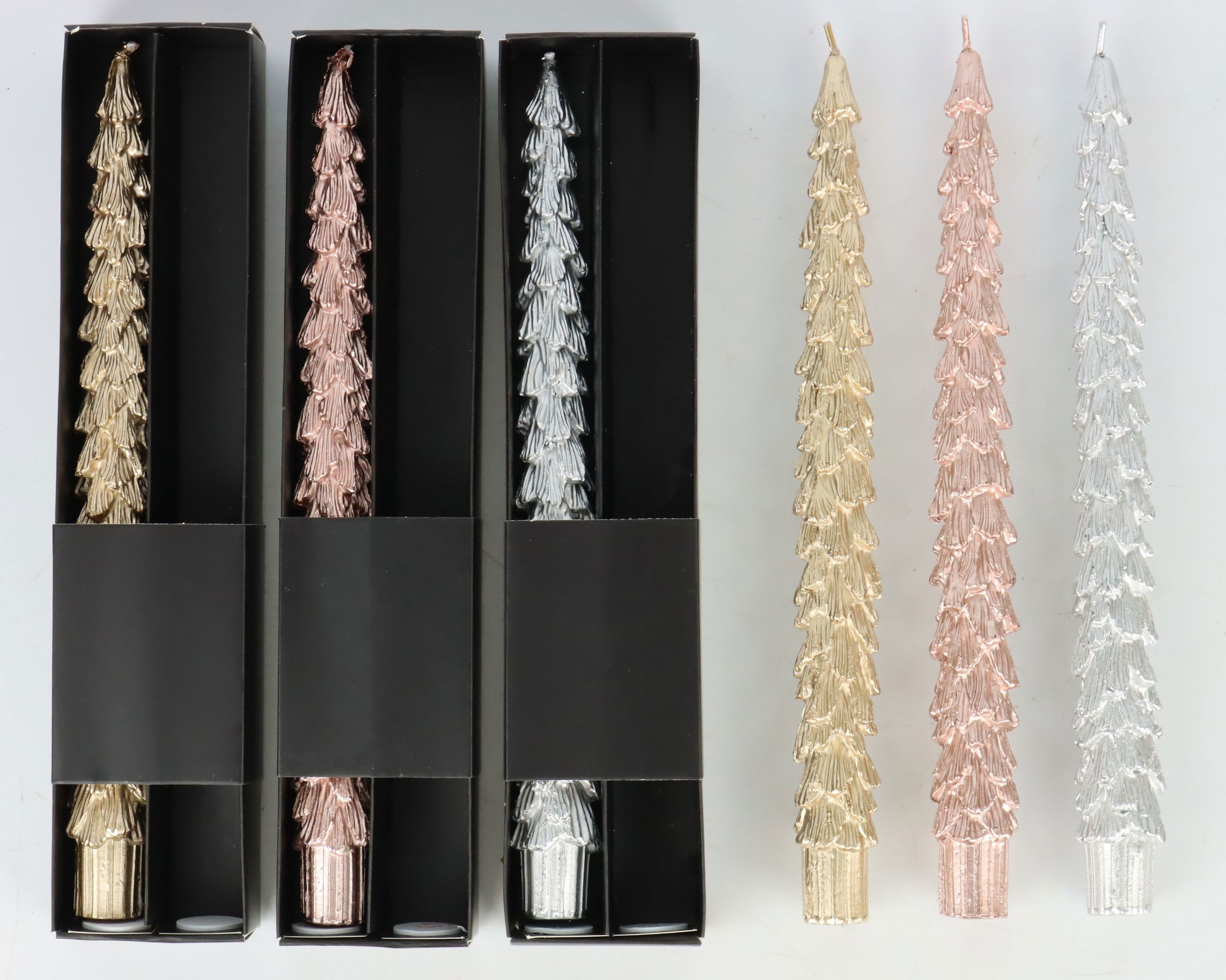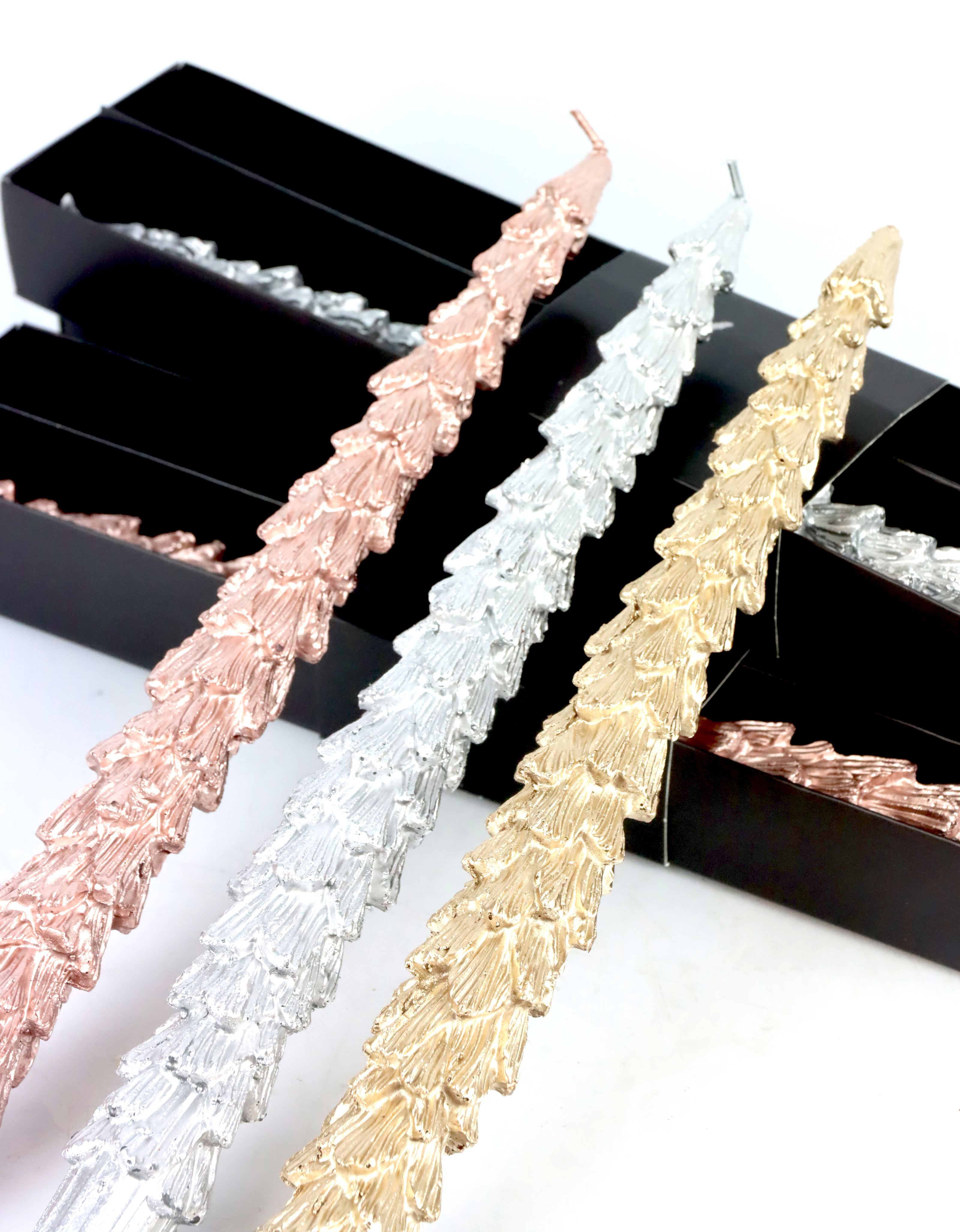 Experience the magical atmosphere of the Christmas season with our enchanting "Forest Flame" stick candle set, item number 6151. The six-piece set adds a touch of elegance to any festive decoration and harmonises perfectly with modern lifestyle trends in living and furnishing. These unique Christmas candles are designed in a stylish fir tree shape and are available in the festive colours gold, silver and pink. They are not only eye-catching, but also add a warm and cosy atmosphere to any room.