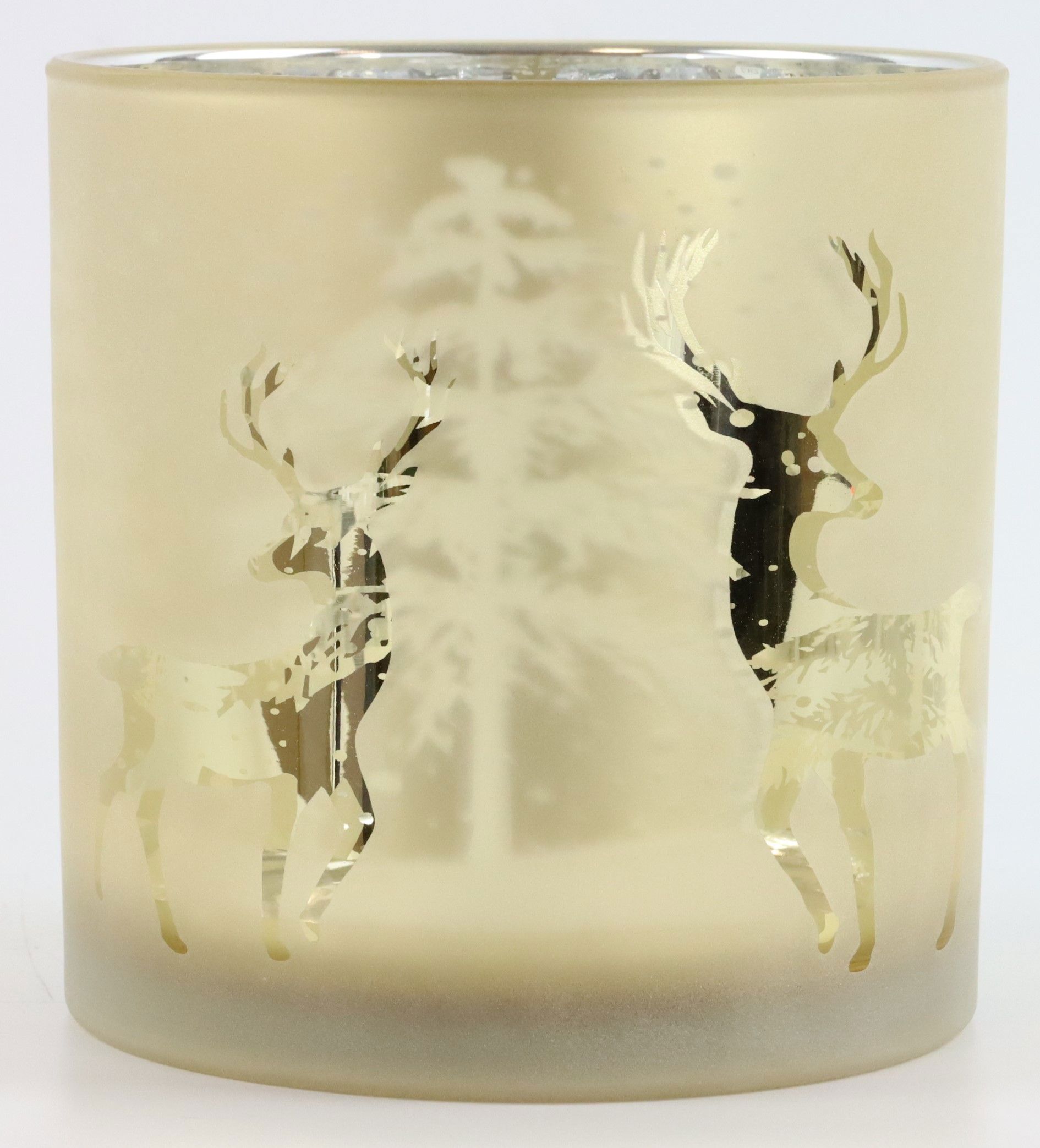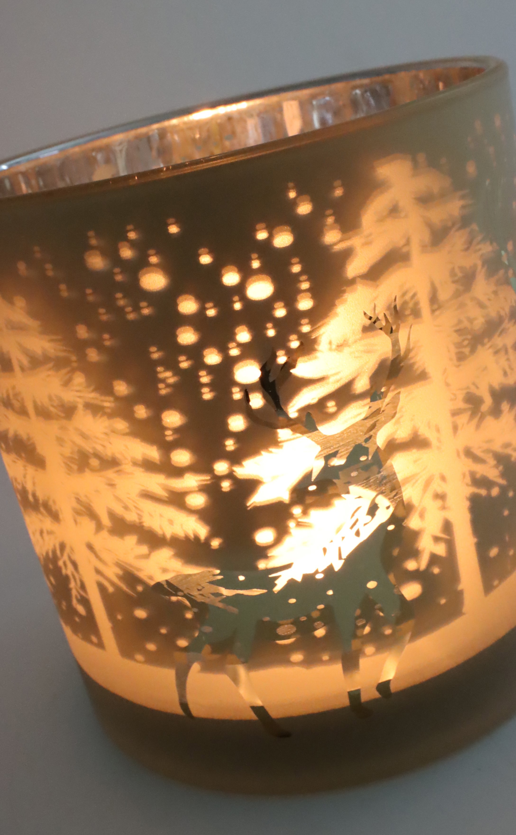 The "Winter scene" lantern is an enchanting addition to the festive range of any home and lifestyle retailer. The shiny gold tone, which is perfect for the Christmas season, creates a warm, cosy atmosphere and the cut-out winter scene with deer and fir tree instantly adds a touch of winter charm to any room. Place this lantern on the table, shelf or windowsill and let the flame of the tea light shine through the filigree cut-outs. The lantern creates a wonderful, calming play of light and creates a special festive atmosphere.