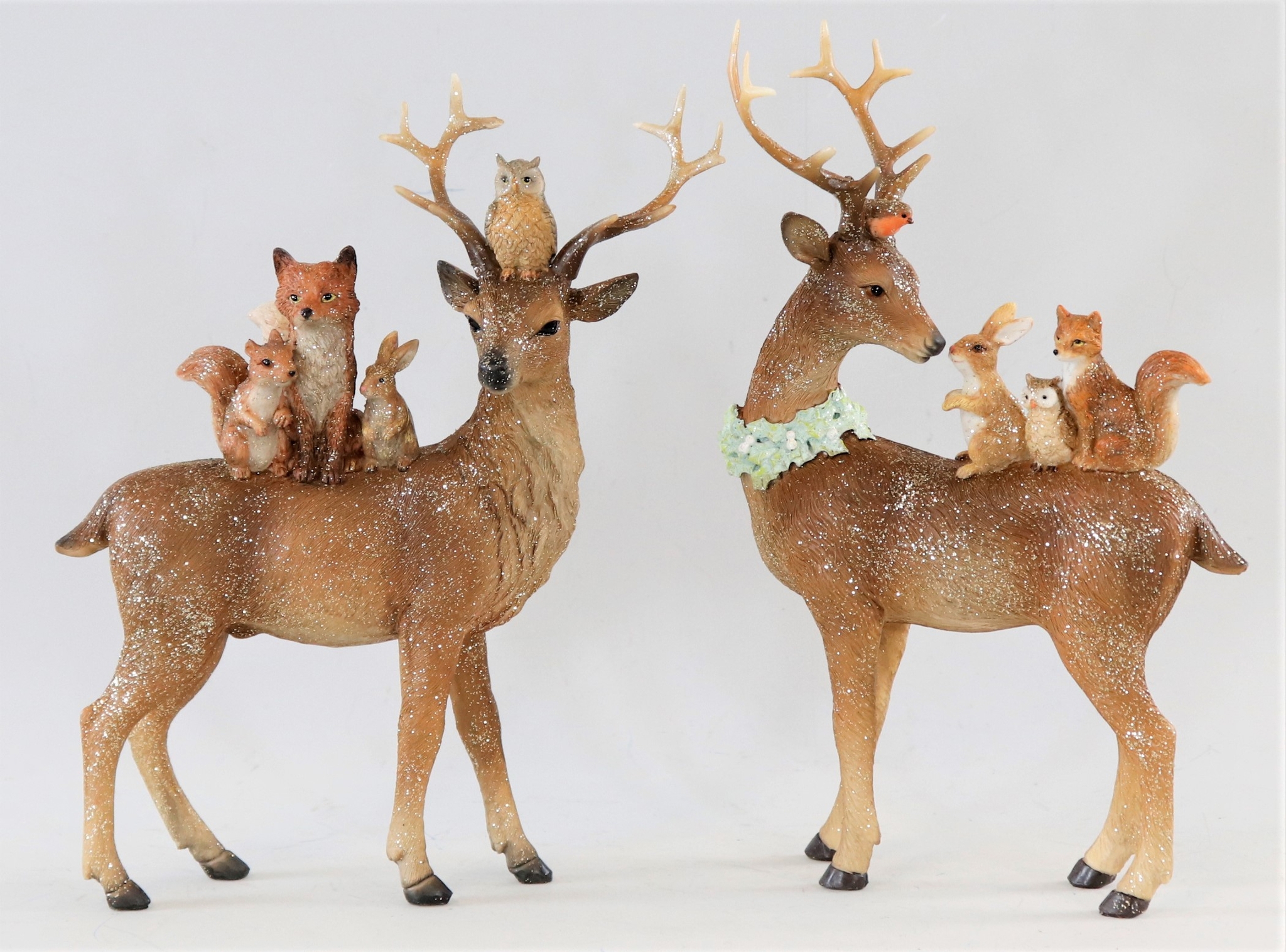 - Product: 2-piece set of woodland deer made of polyresin