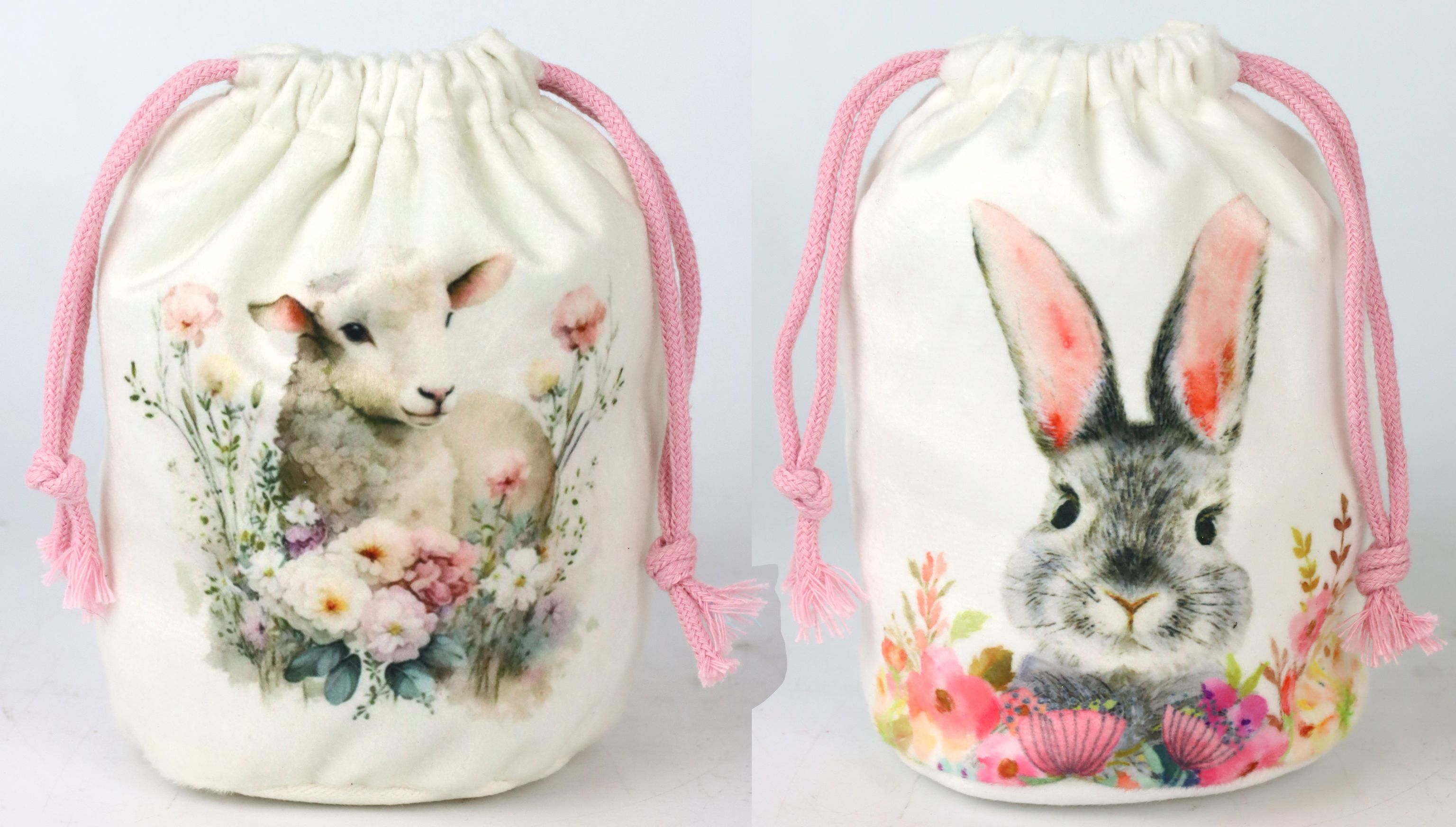 - **Set of two bags:** Contains two bags with the enchanting motifs lamb and rabbit.