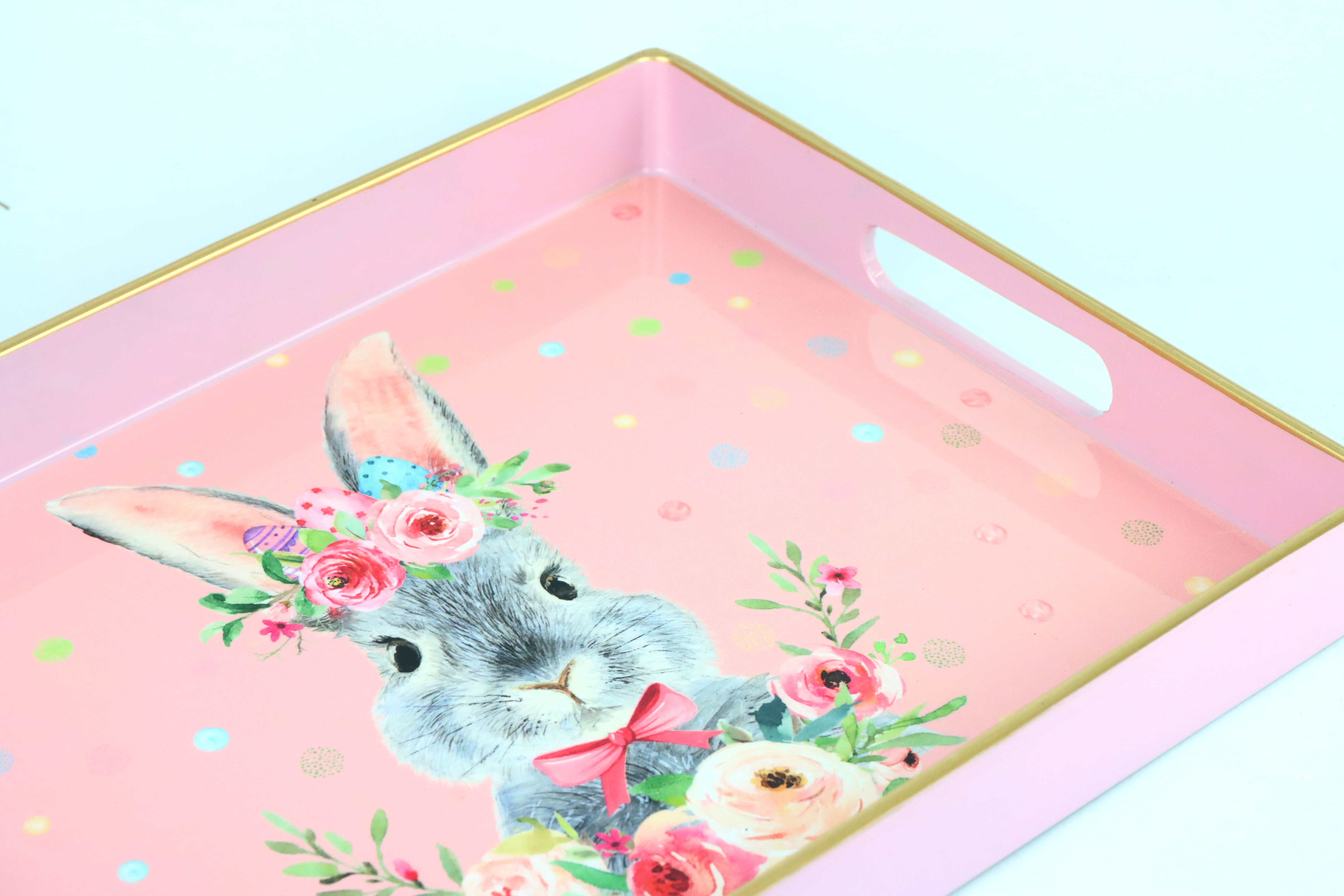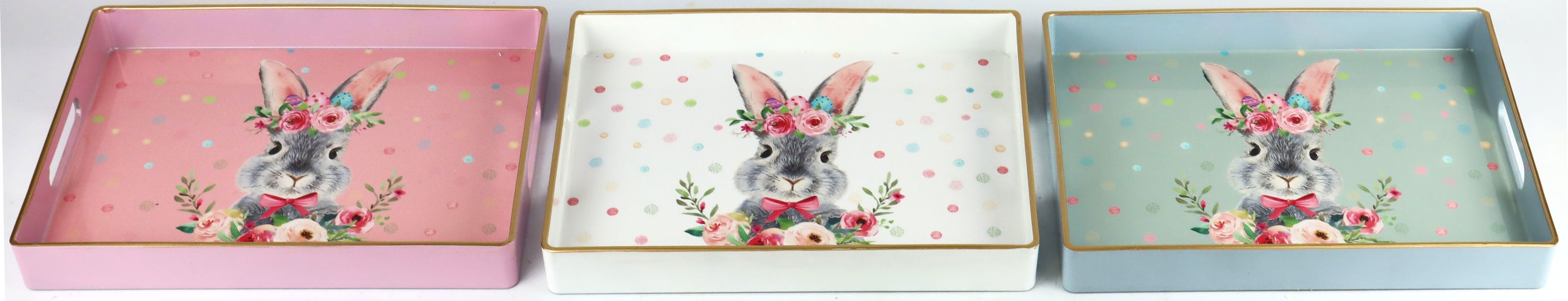 - **Set consisting of 3 trays** with attractive flower bunny motifs