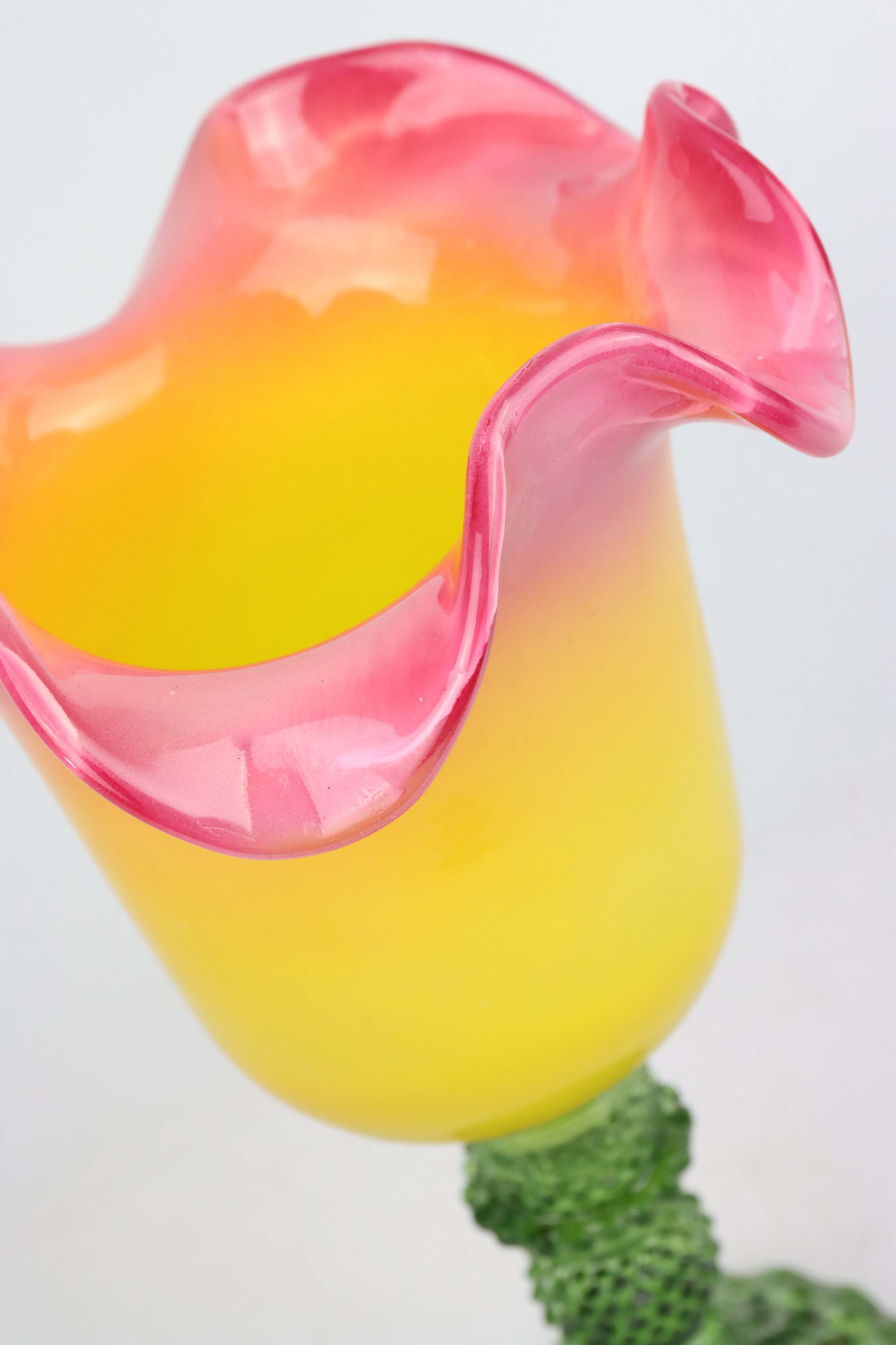 Discover the fascinating "Color Bloom" goblet glass - a unique vase that will inspire your spring and summer decorations with vibrant shades of colour. This exquisite vase is not only an eye-catcher in any room, but also a masterful example of glass design. With a gentle colour gradient in orange, yellow and green, it perfectly complements a variety of interiors and offers your stationary retail in the home and lifestyle sector the opportunity to set fresh accents.