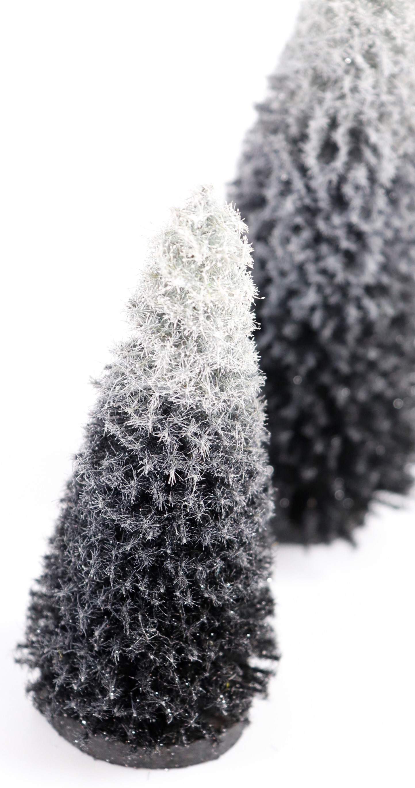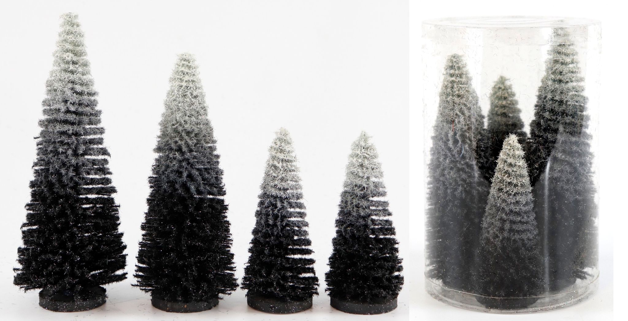 Discover the exclusive set of "GLAM" ornamental trees that will add an elegant and modern touch to your retail shop at Christmas time. This four-piece set is perfect for stationary retail in the home and lifestyle sector and is guaranteed to delight your customers. The elegant ornamental trees in stylish black and white are made from a combination of high-quality polystyrene, hard-wearing wood and durable plastic. They are available in heights of approx. 15 cm and 8 cm and therefore fit perfectly into any decoration, whether as a highlight on a festive table, in your shop window or as part of a larger decorative arrangement.