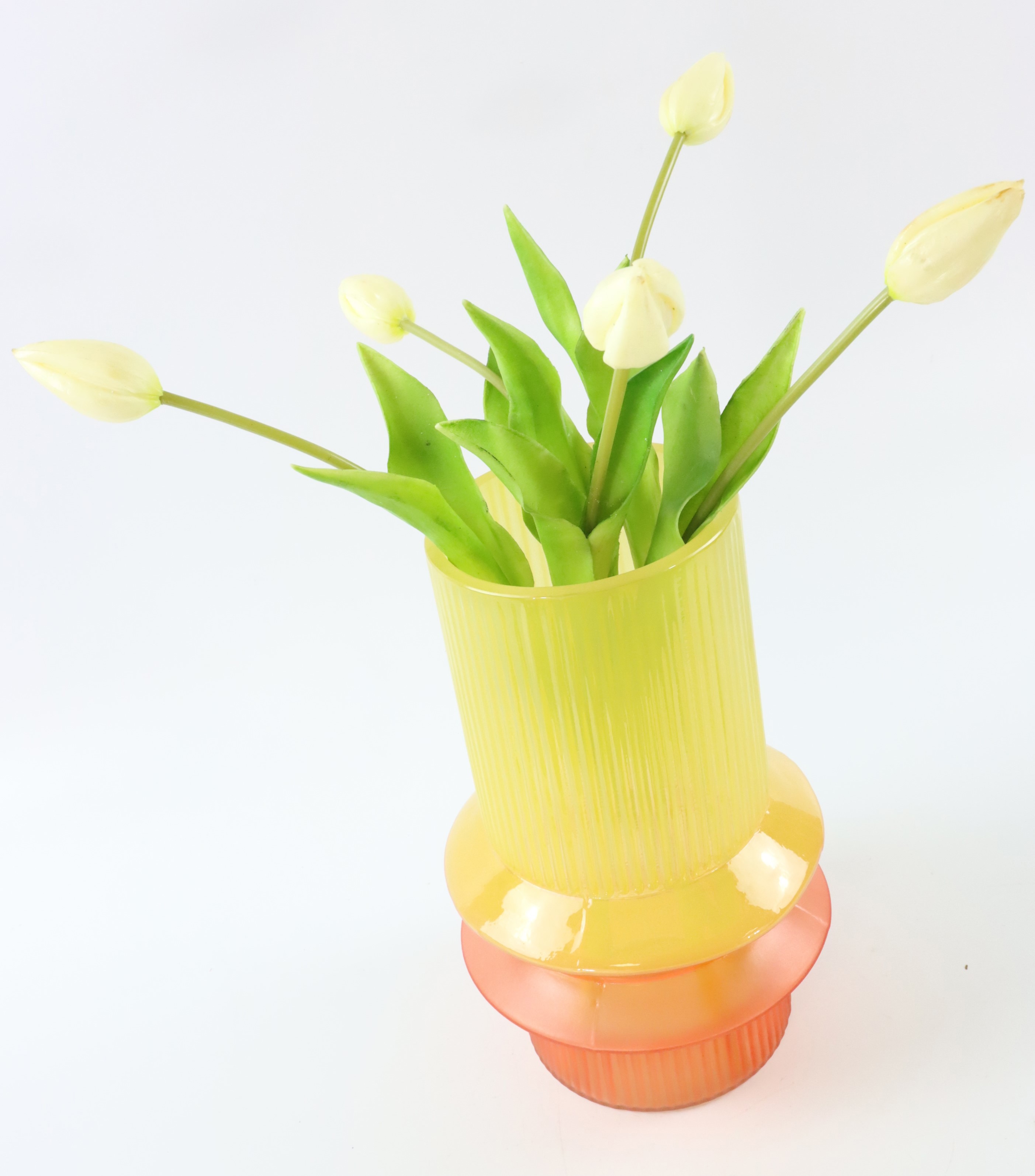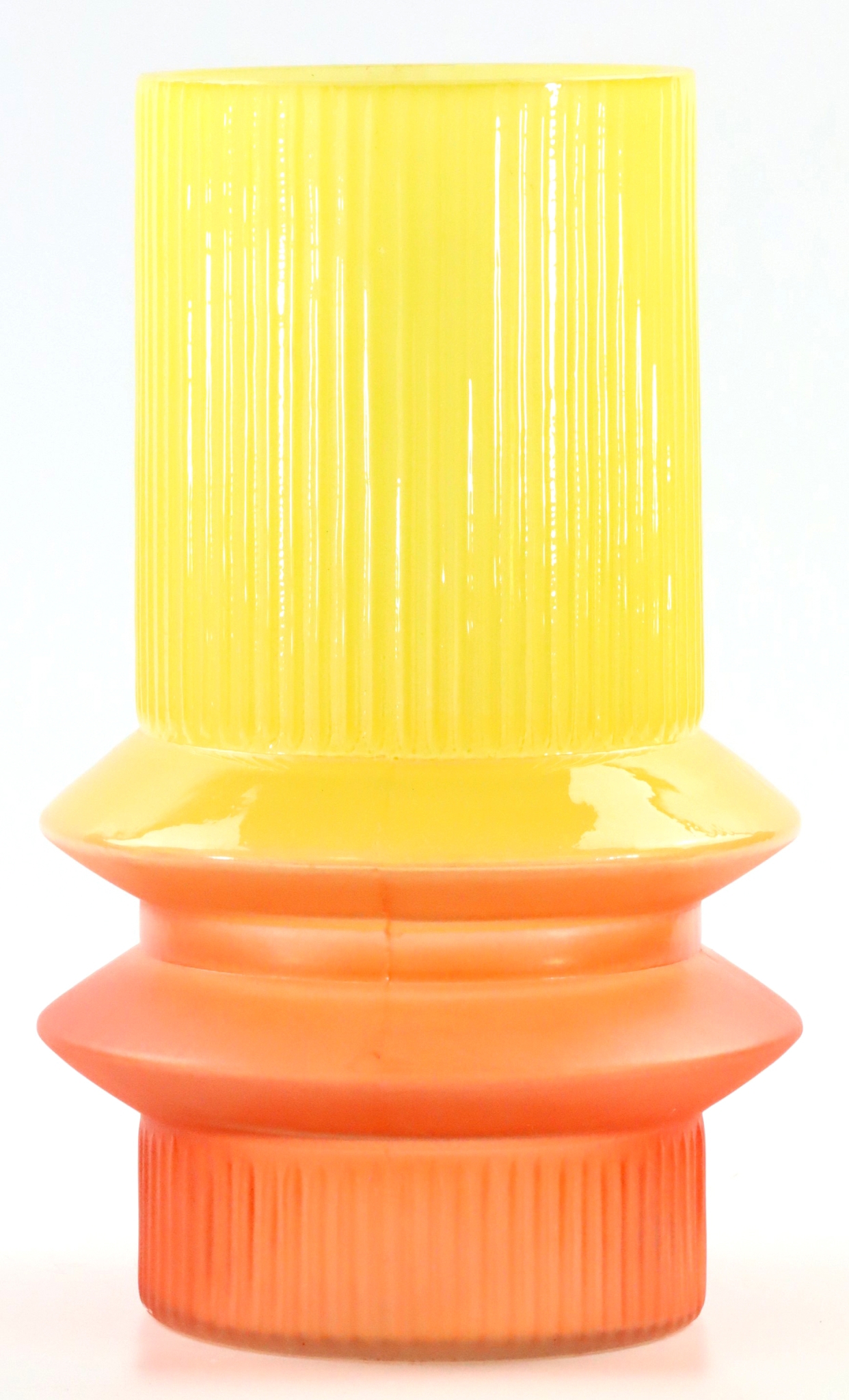 Experience a versatile decorative element that brings colour and style to any living room, office or shop with our "Multicolor" vase. Specially designed for the spring/summer season, this vase will add a fresh and vibrant atmosphere to any room with its remarkable orange/yellow colour combination. The vase is made of high-quality glass and measures approx. 25 cm in height. It is therefore ideal for stylishly showcasing both small and medium-sized flower arrangements.