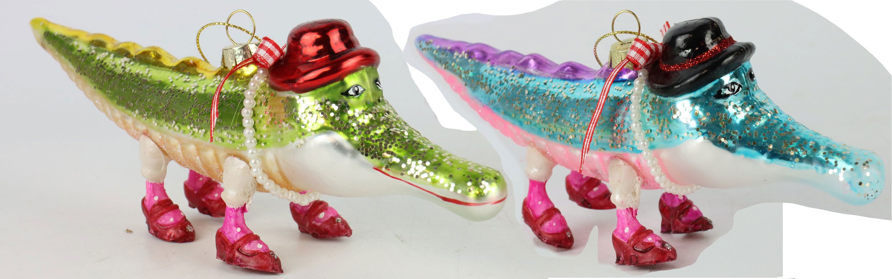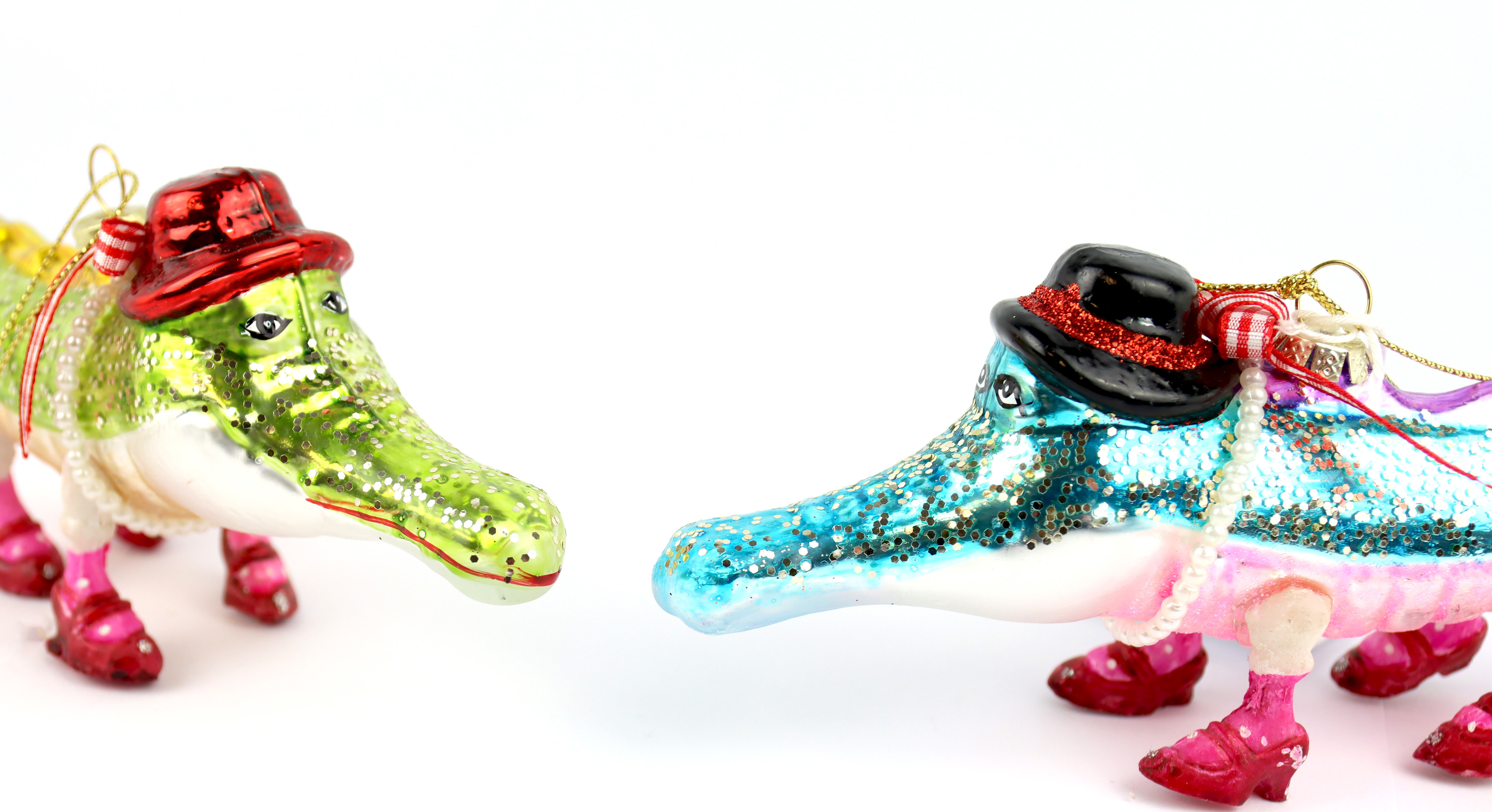The glass jewellery sets are particularly popular as eye-catchers in shop windows or as an unusual highlight on the Christmas tree. The eye-catching colours and artistic production make each crocodile unique and create a playful yet elegant atmosphere. Ideal for customers who are looking for something special and want to enhance their Christmas decorations. This is authenticity and style wrapped up in a stunning design that radiates pure joy.