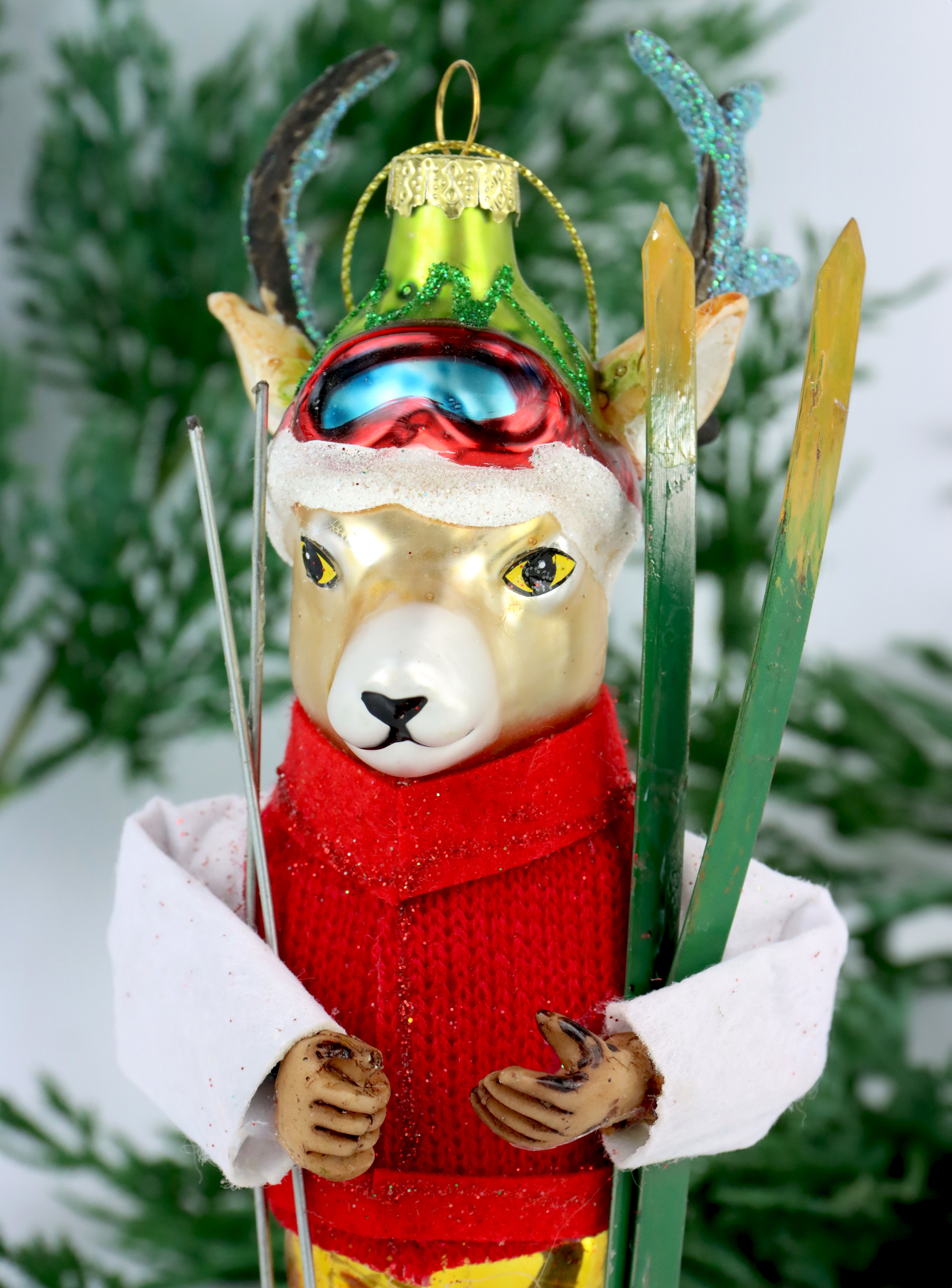 1. expressive glass ornament 'Ski Moose' for the Christmas season