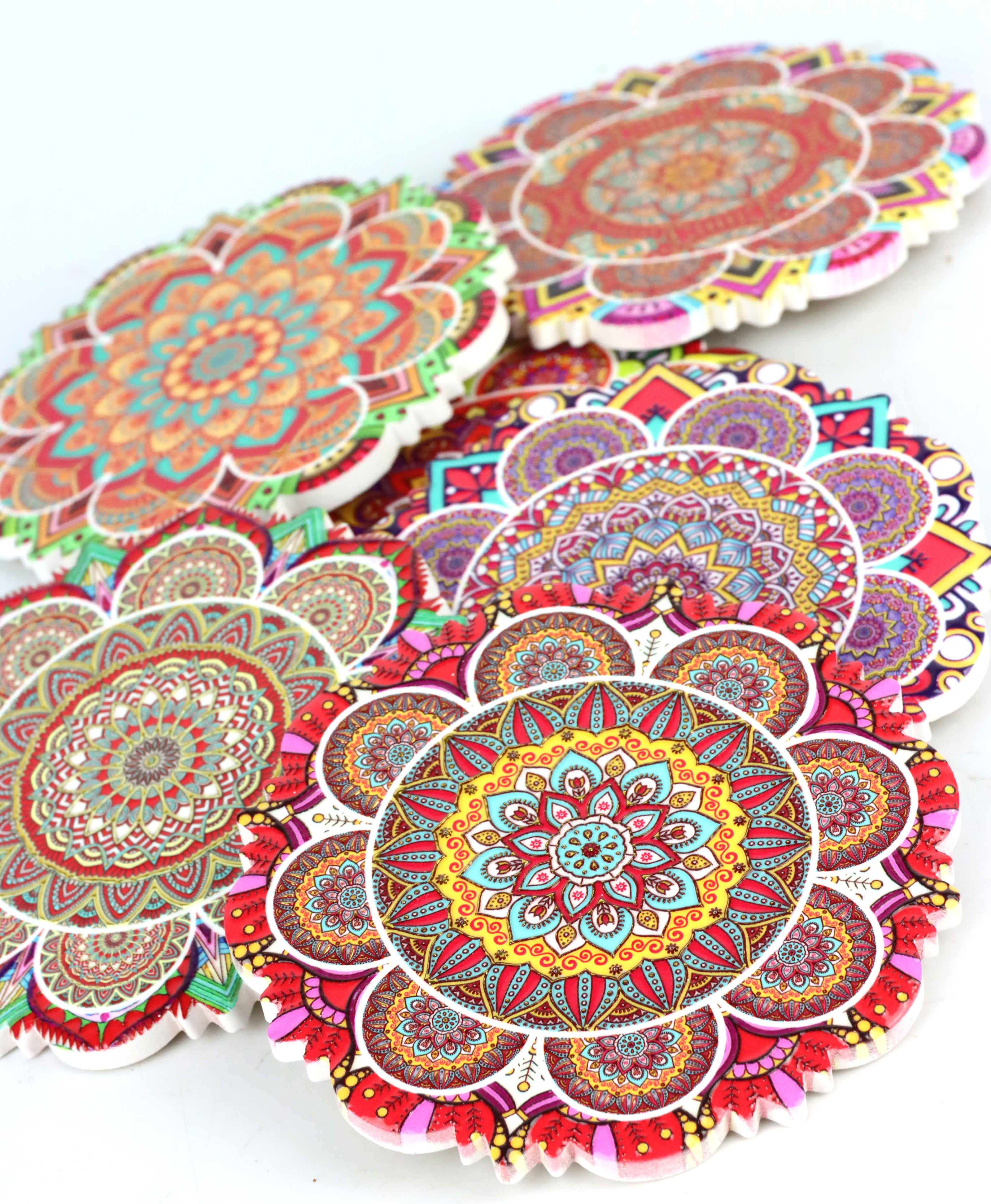 - Six-piece coaster set with elegant mosaic motif