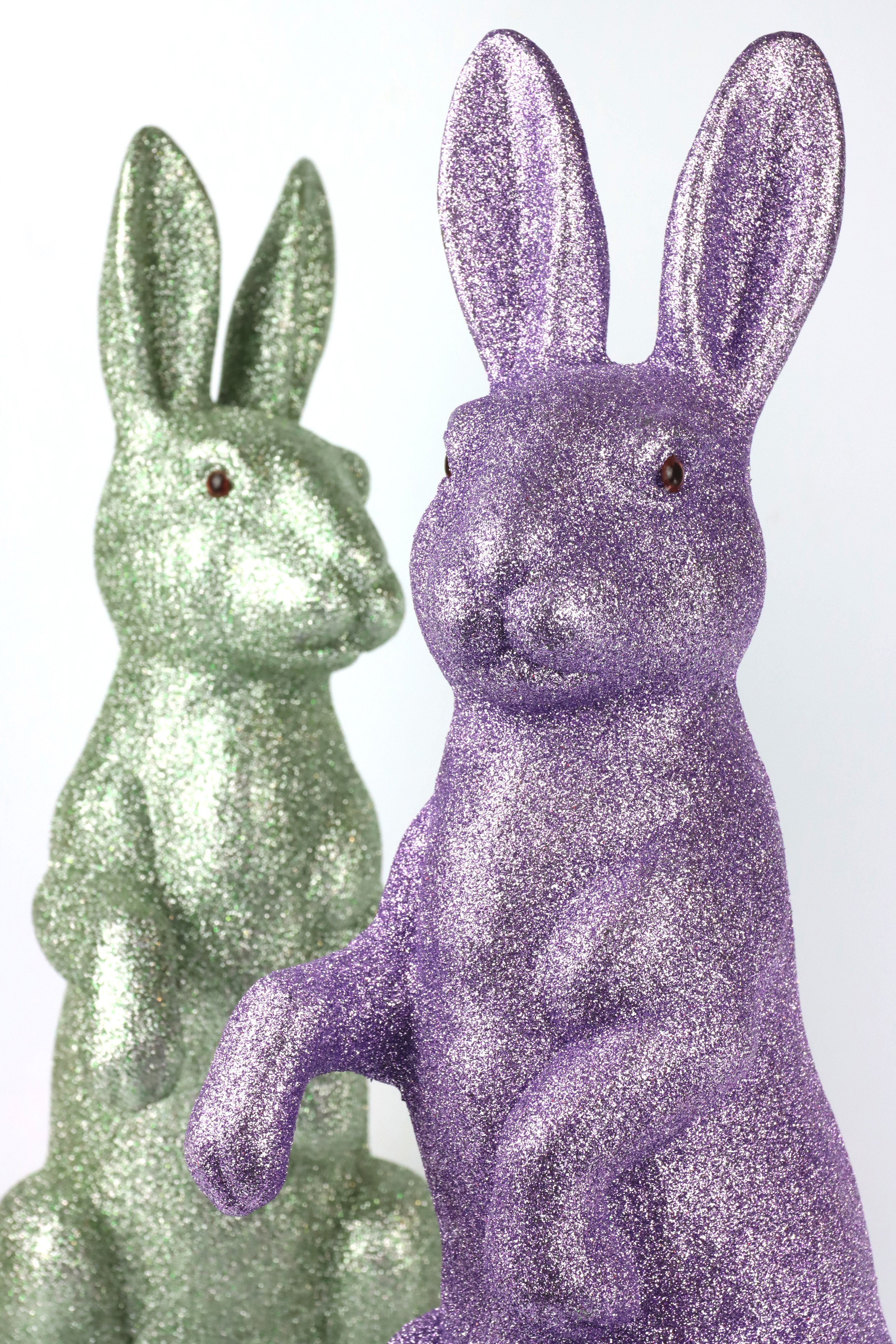 Discover the charming BUNNY "MAGNIFICENCE" set, a must-have for any sophisticated retail Easter decoration. This exquisite 2-piece set of glittering bunnies will add a touch of elegance and glamour to your collection. Made from high quality plastic, the bunnies are characterised by their remarkable size of approx. 44 cm, making them an impressive eye-catcher in any shop window or shop display.