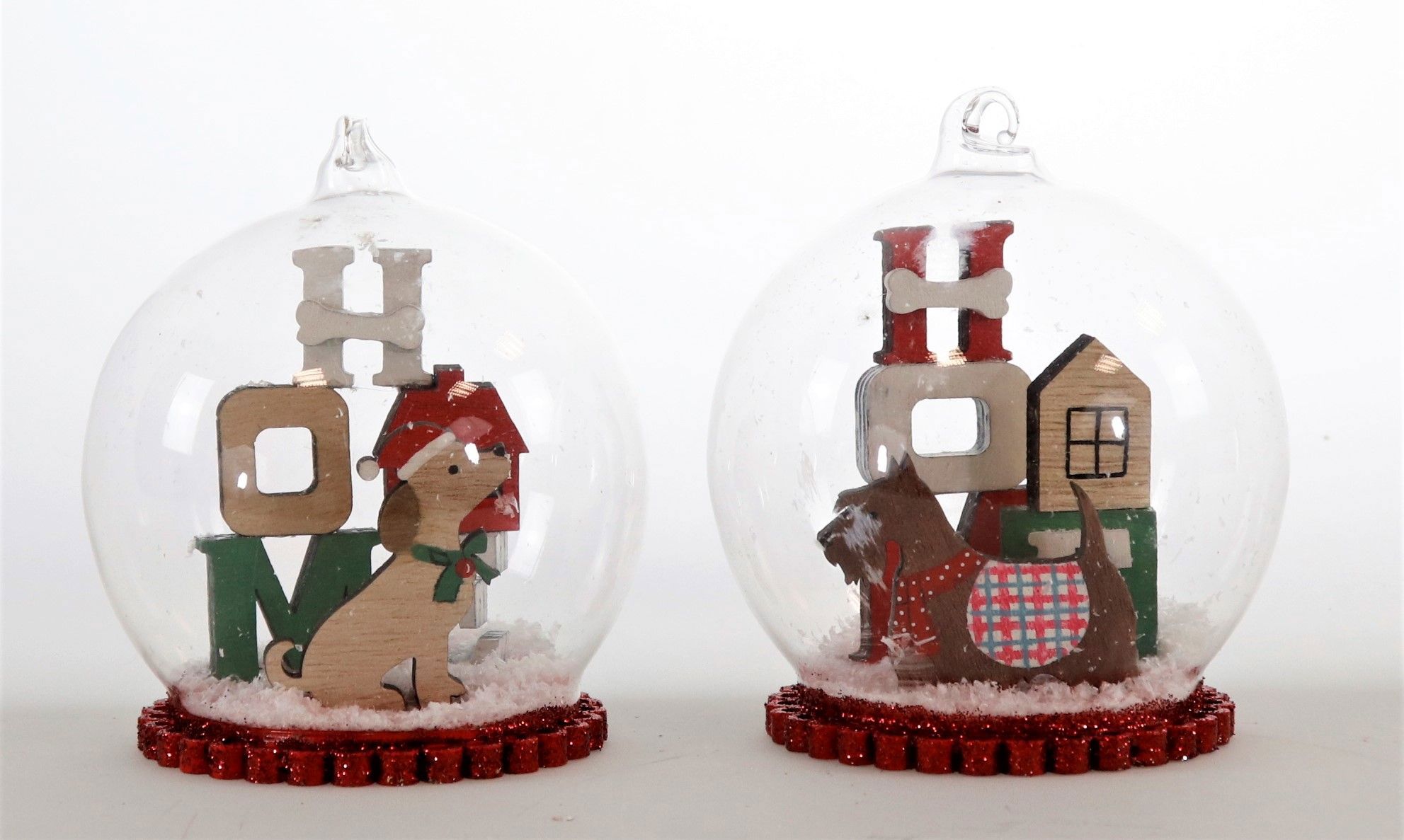 glass domes christmas dogs s/2
