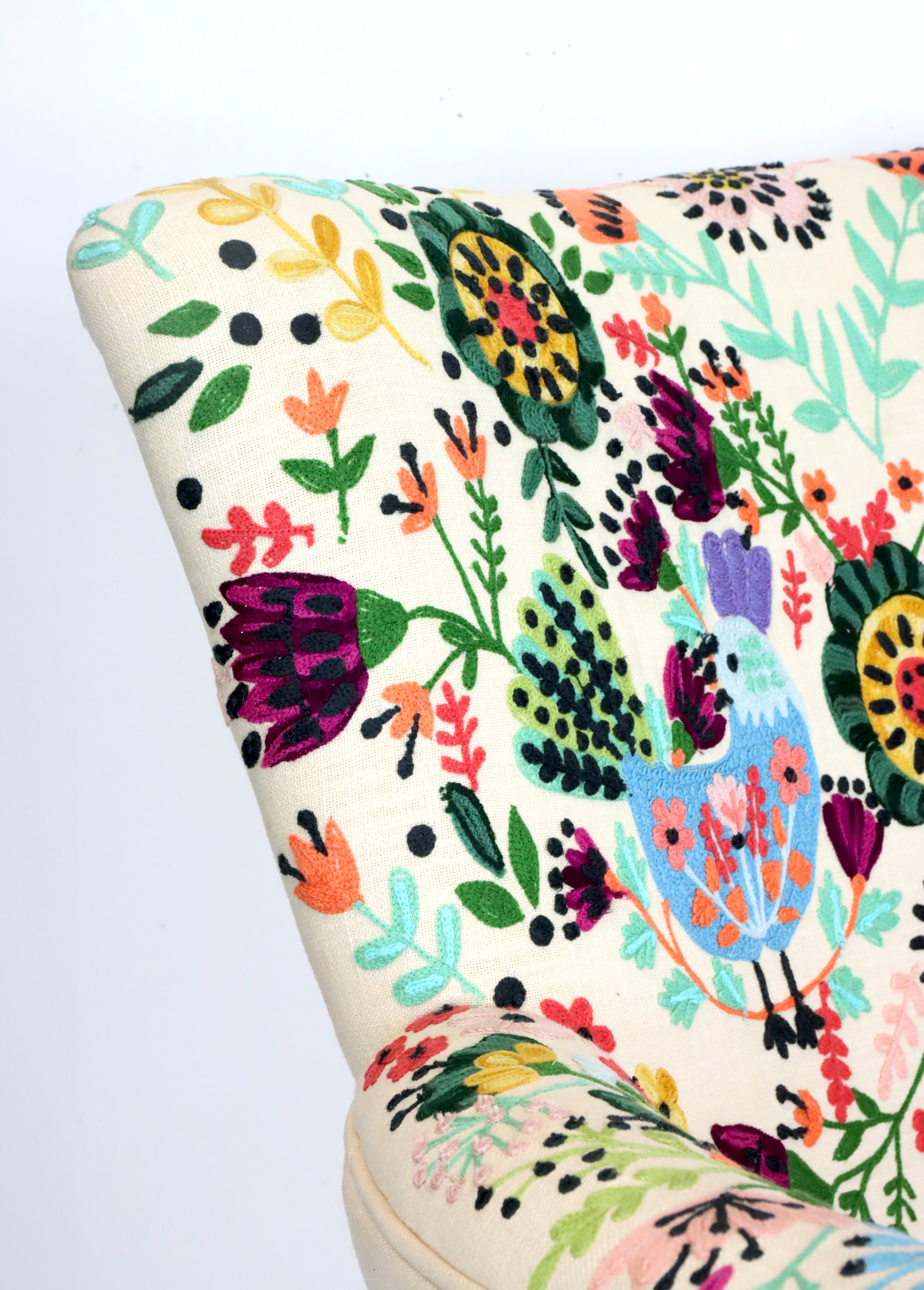 EN**Bella Flora" armchair - the perfect springtime eye-catcher made of mango wood and cotton**