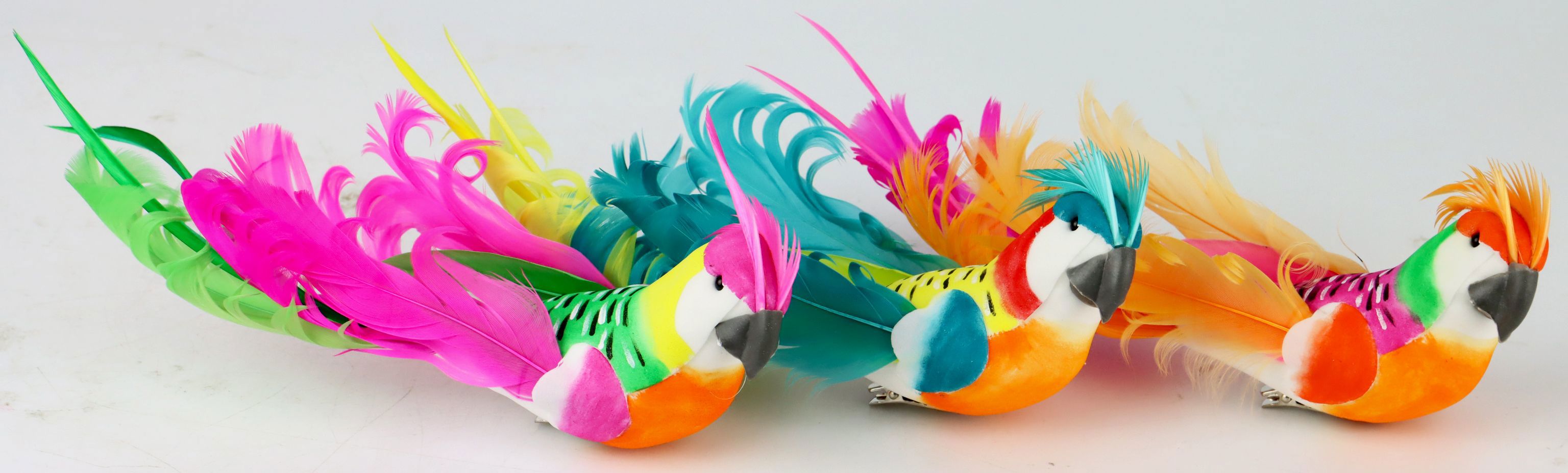 Las pinzas para loros están hechas de poliestireno de alta calidad y decoradas con detalladas plumas artificiales para garantizar un diseño realista y colorido. Cada loro mide unos 19 cm y está provisto de un clip metálico que permite fijarlo con facilidad y flexibilidad. Estas características hacen que los clips sean versátiles, ya sea para adornar plantas, cortinas o mostradores de tiendas.