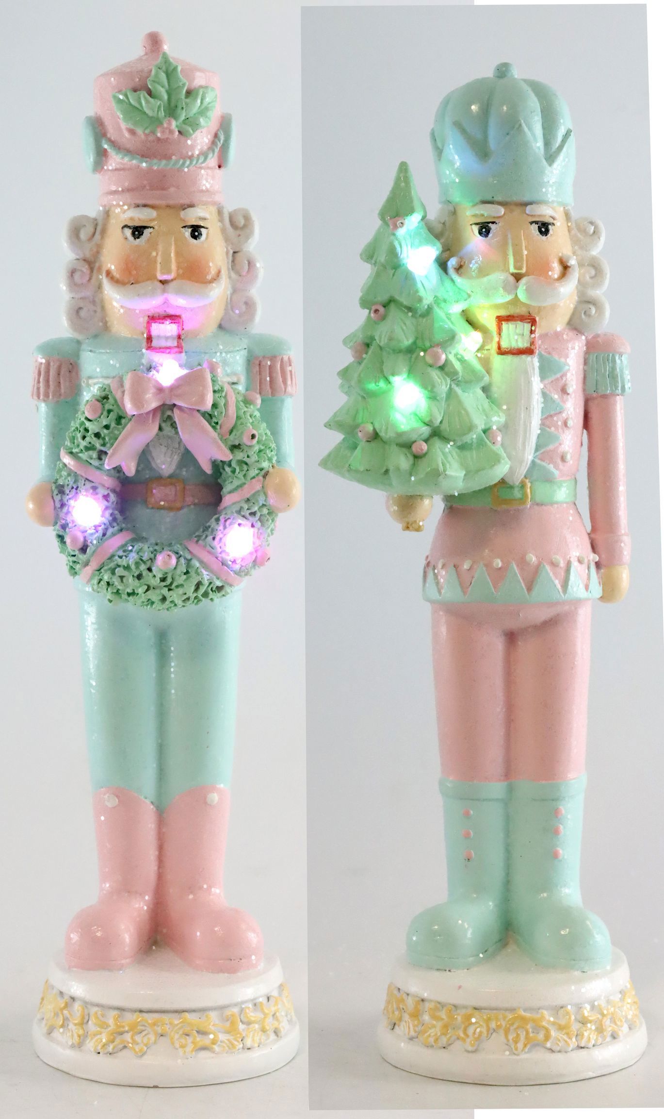 - Dos figuras de cascanueces de poliresina de alta calidad en turquesa y rosa pastel