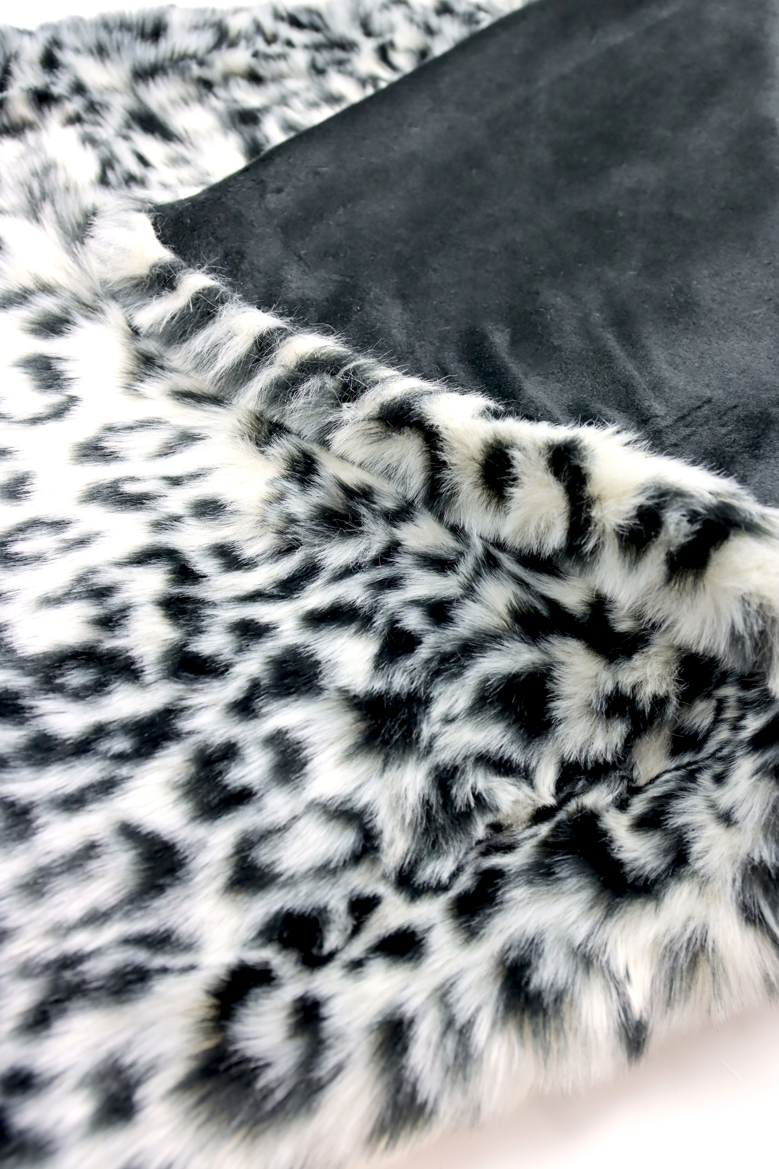ES**El confort se une a la elegancia: alfombra de piel "Animal Luxe" con estampado de leopardo blanco**.