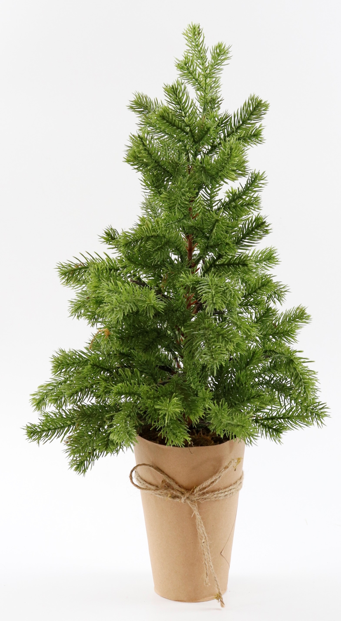 El verde exuberante de las ramas de abeto artificial es duradero y no pierde su color y belleza ni siquiera con el paso de los años. El abeto se alza orgulloso en una maceta robusta, y el conjunto se completa con una cohesión de papel que añade un encanto natural y rústico. Este producto es una mezcla perfecta de estética moderna y diseño tradicional que encantará a sus clientes.