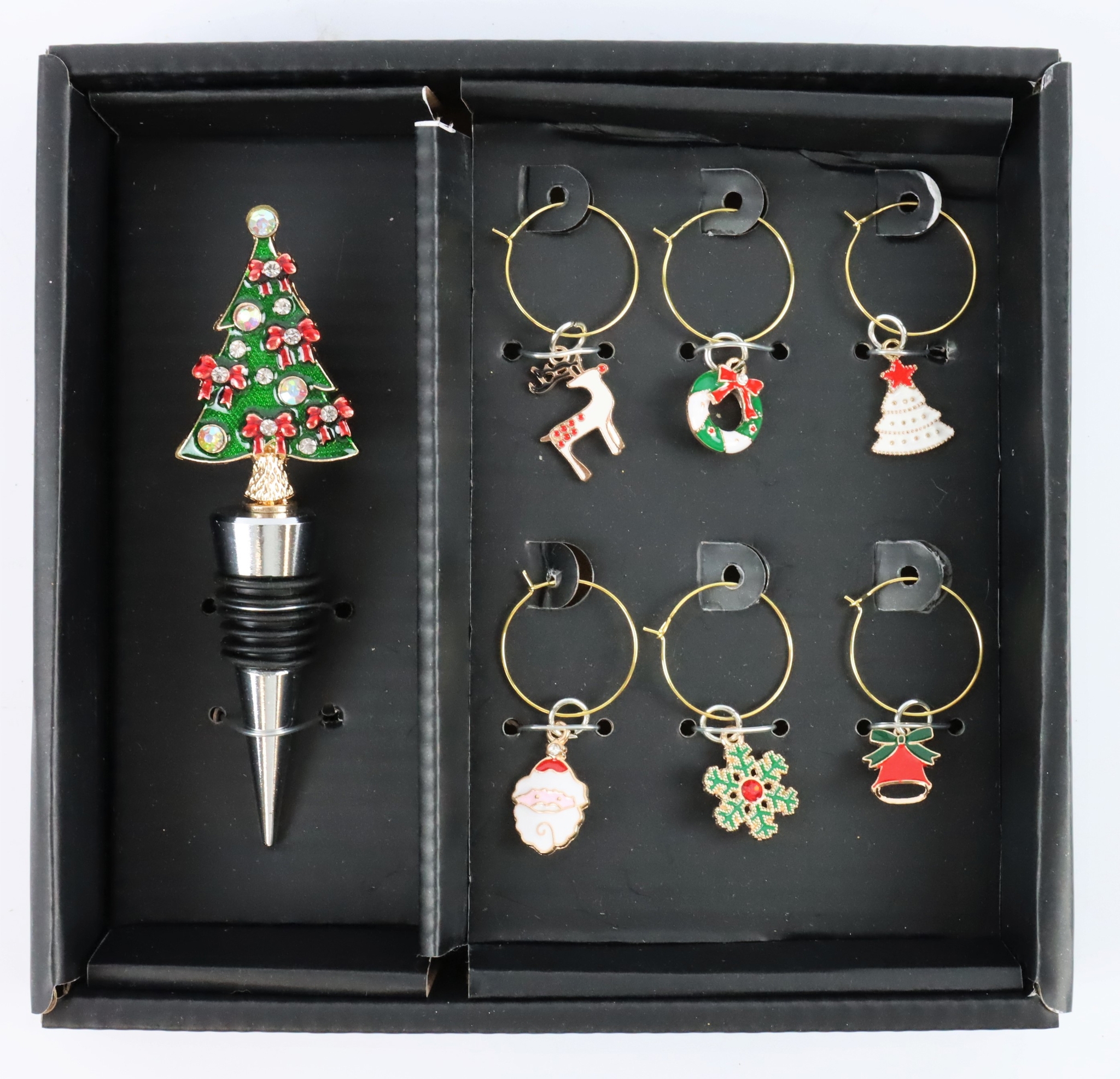 Nuestro juego de tapones de botella "ÁRBOL" combina funcionalidad y estilo con un toque lúdico. El tapón de botella, fabricado en metal resistente, mantiene frescas sus bebidas al tiempo que sella la alegría festiva. Presenta un encantador motivo de árbol de Navidad que irradia festividad y captura la magia de la temporada. Los 6 marcadores de copa adicionales, hechos de cristal y con forma de pequeños árboles de Navidad, no sólo proporcionan una distinción personalizada entre las copas, sino también un bonito aspecto festivo.