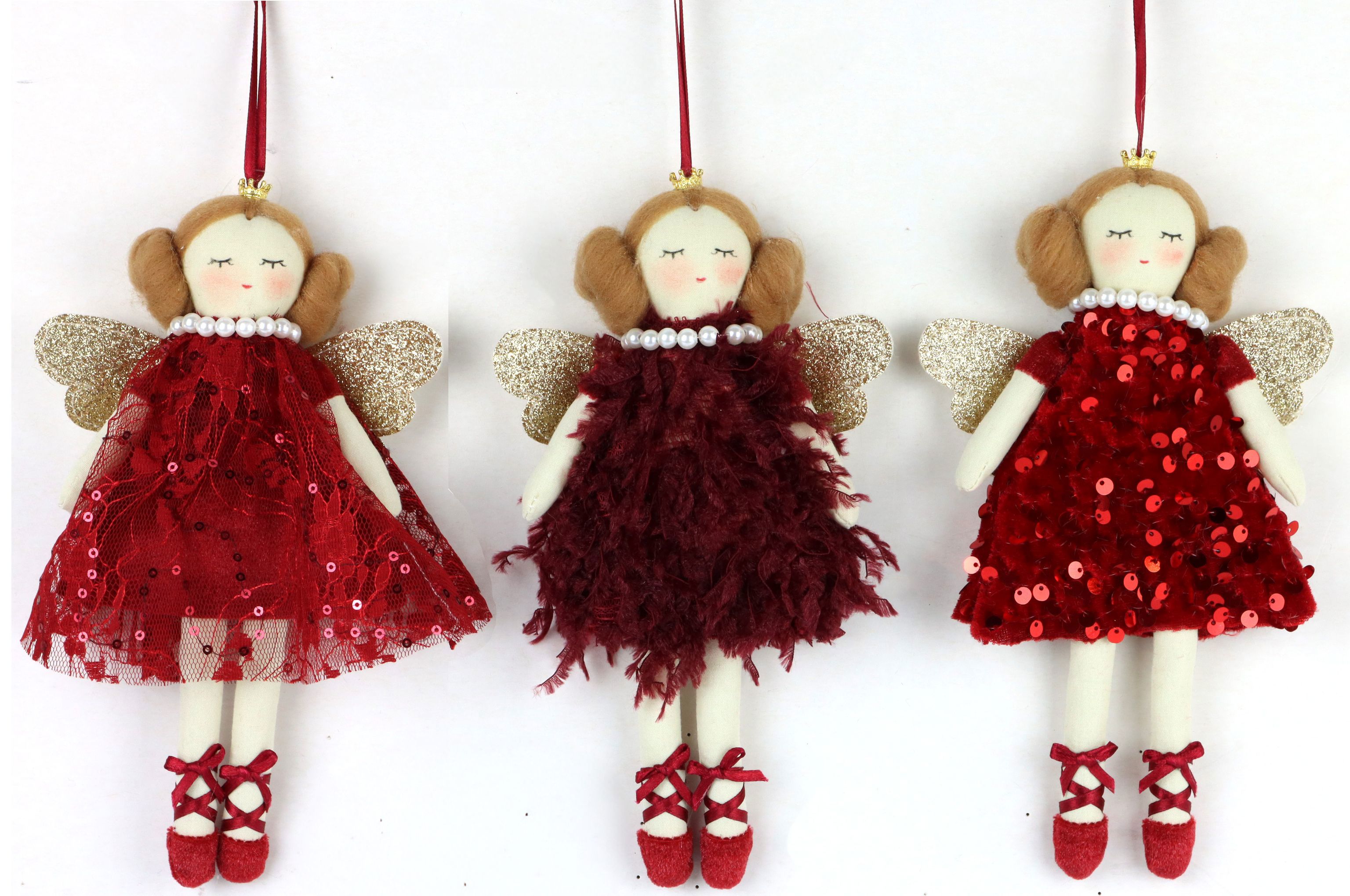 Fabricados en poliéster resistente, estos colgantes de ángeles miden unos 20 cm de alto y son de un intenso color bermellón. Este expresivo color simboliza la pasión y la energía, atributos inherentes a la época navideña. El ángel "bermellón" S/3 presenta detalles muy elaborados, como las alas ornamentadas y los adornos brillantes, que atraen la atención de todos los observadores y acentúan el ambiente festivo.