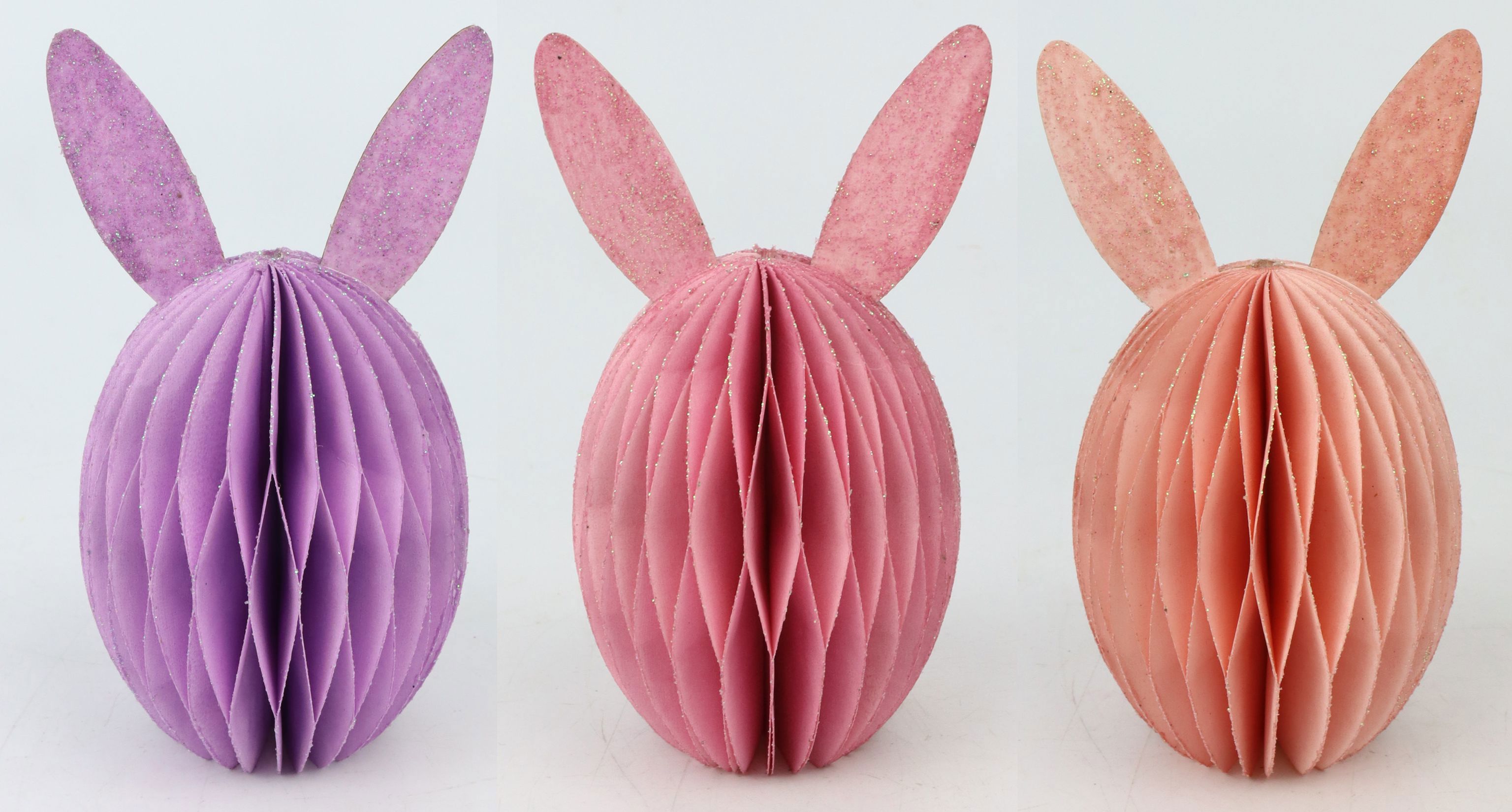 Découvrez le ravissant set OEUFS DE LAPIN "HONEYCOMB", parfait pour la décoration de Pâques de votre magasin ou de votre vitrine. Ce set de trois œufs de lapin apporte l'atmosphère joyeuse et ludique du printemps et de Pâques directement dans votre espace de vente. Les œufs de lapin sont d'un rose doux et ont été fabriqués en papier de haute qualité selon la technique sophistiquée du honeycomb. D'une taille d'environ 12 cm, ils attirent idéalement le regard et créent une ambiance stylée et élégante.