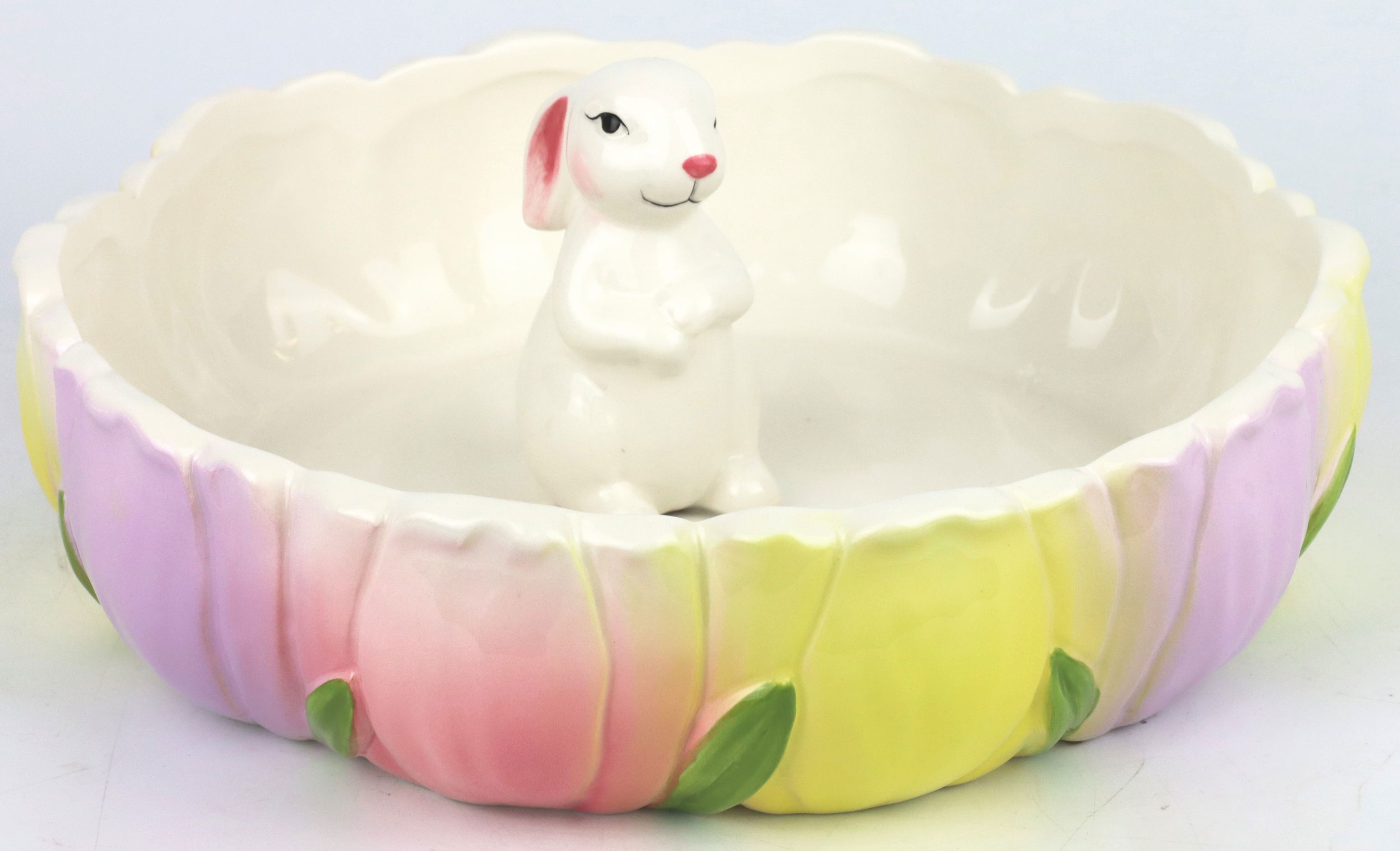 Découvrez la décoration de Pâques parfaite pour votre espace de vente : la ravissante coupe "FLOWER BUNNY". Cette coupe unique en céramique de 25 cm de diamètre a été spécialement conçue pour les fêtes de printemps et de Pâques. Peinte à la main, cette coupe présente un adorable motif de lapin qui ravira vos clients.