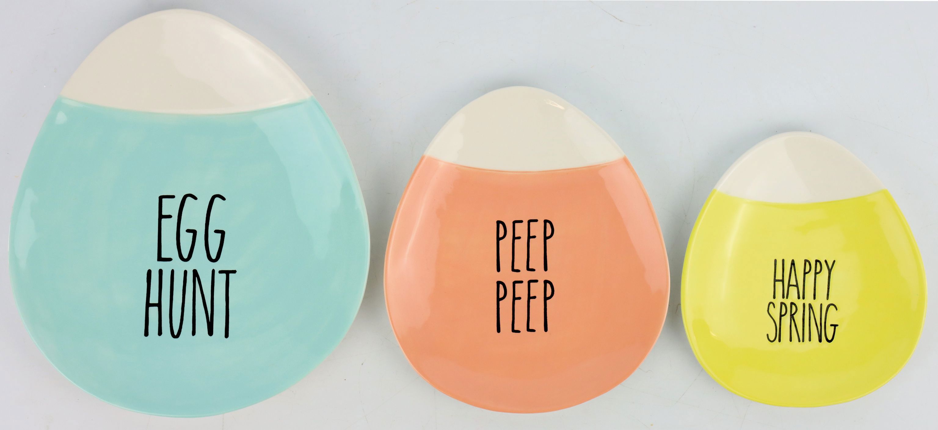 Les assiettes à oeufs sont disponibles en trois tailles différentes : environ 14 cm, 17 cm et 21 cm. Vous offrez ainsi à vos clients la possibilité parfaite de présenter avec style les œufs de Pâques et autres petites friandises. Que ce soit pour un usage quotidien ou pour attirer l'attention lors de vos festivités de Pâques, ces assiettes à oeufs vous permettent de laisser libre cours à votre créativité.