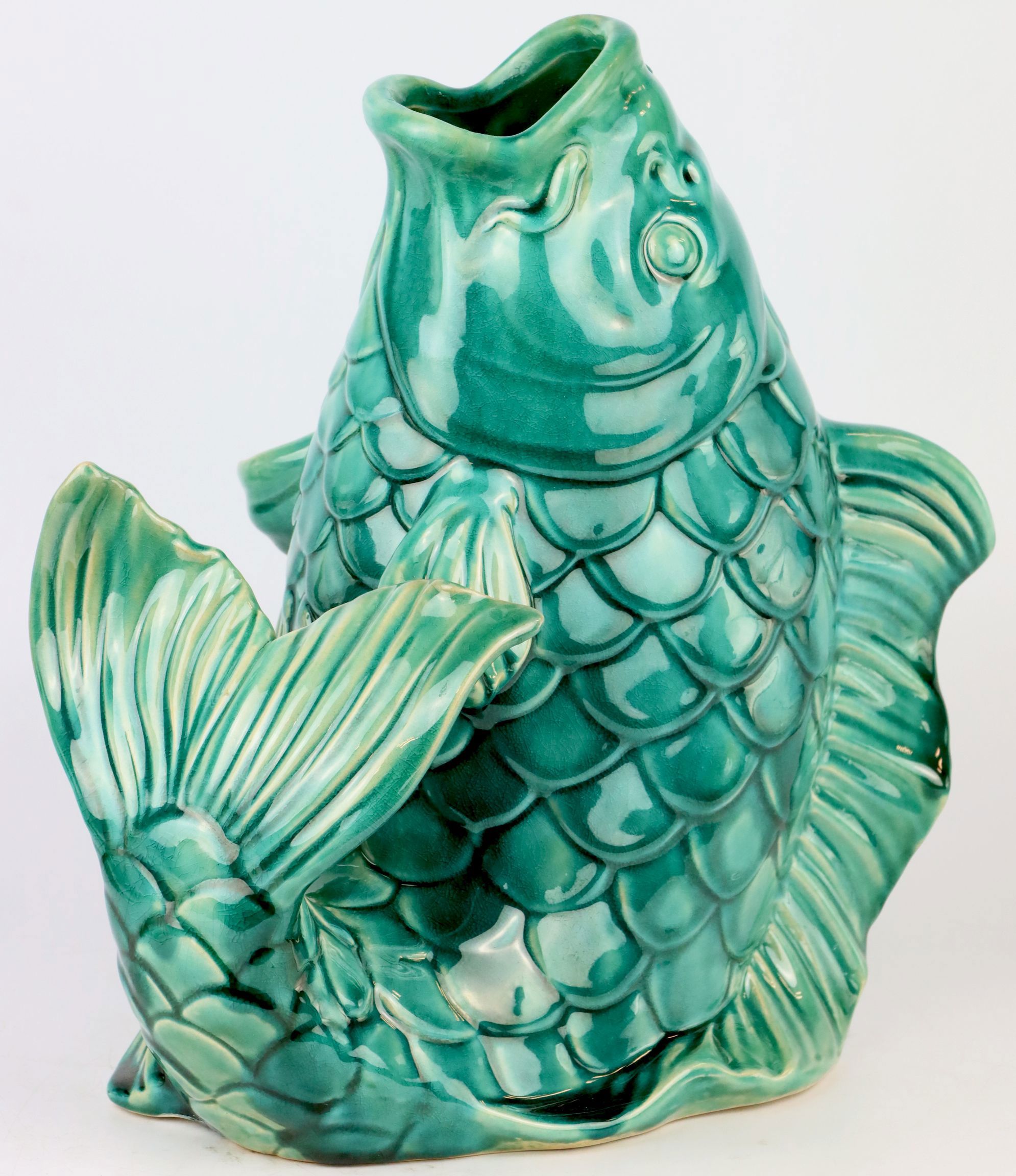**Keywords:** Vase, "Lucky Fish", motif de poisson, céramique, vert, printemps, été, composition florale, habitat et style de vie, commerce de détail, cadeau, vase décoratif.