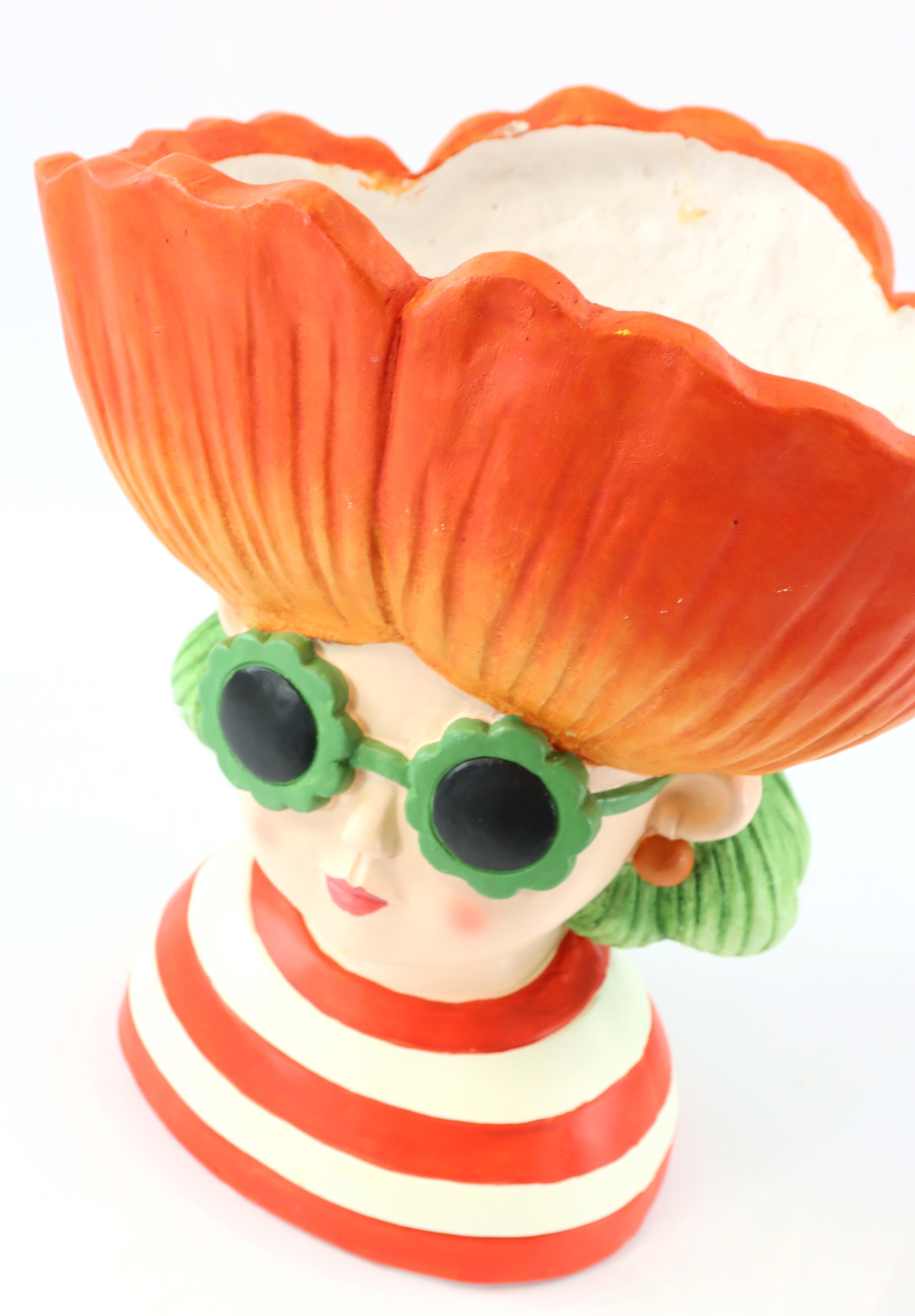 Découvrez la beauté et l'élégance de l'objet à planter "POPPY GIRL", un atout décoratif unique pour votre magasin ou votre salle d'exposition. Ce pot à plantes au design artistique combine de manière fascinante une utilité fonctionnelle et un design esthétique. Le "POPPY GIRL" est un objet végétal impressionnant en forme de tête de femme avec une magnifique fleur rouge, qui reflète parfaitement la fraîcheur et la vitalité de la saison printemps/été.