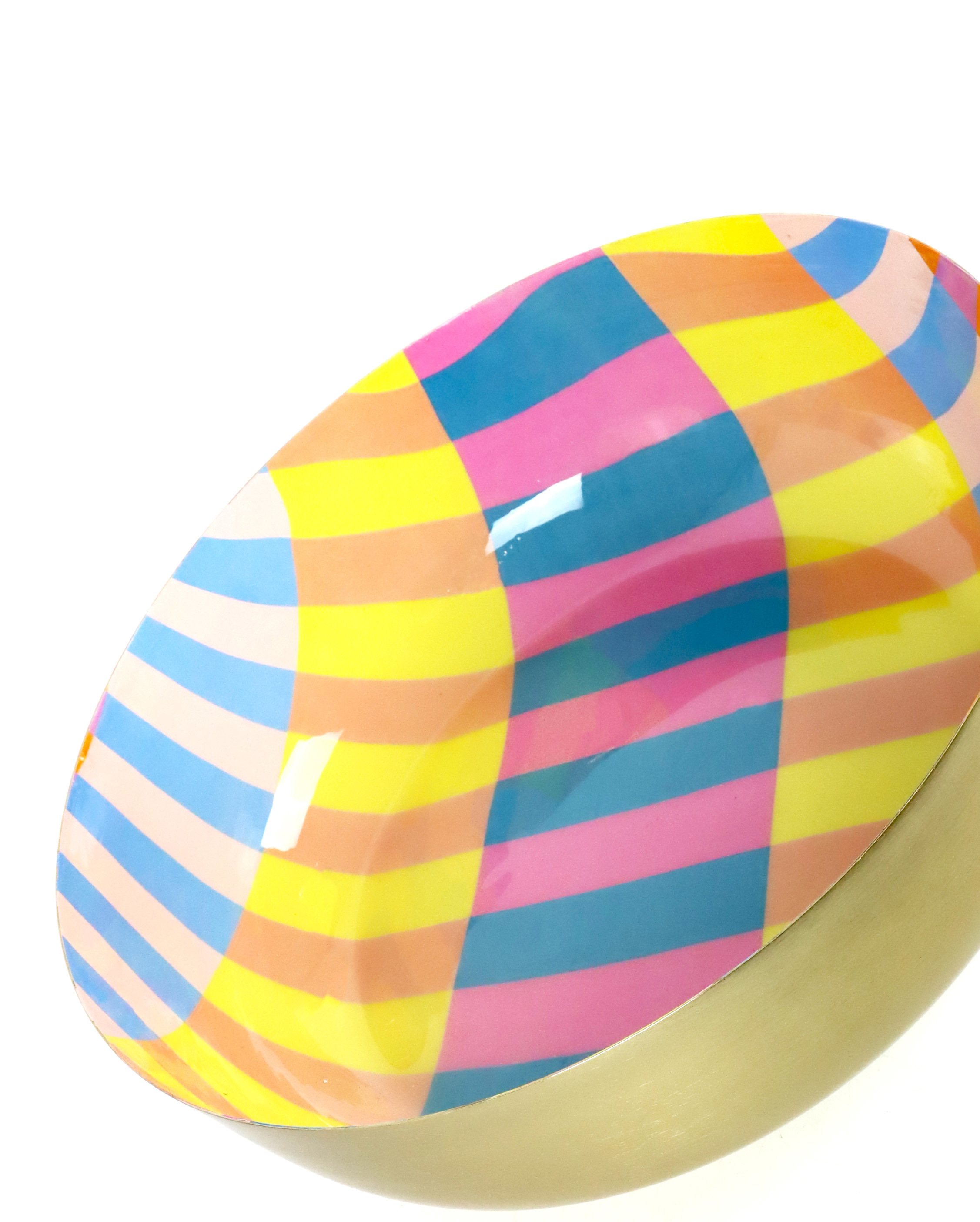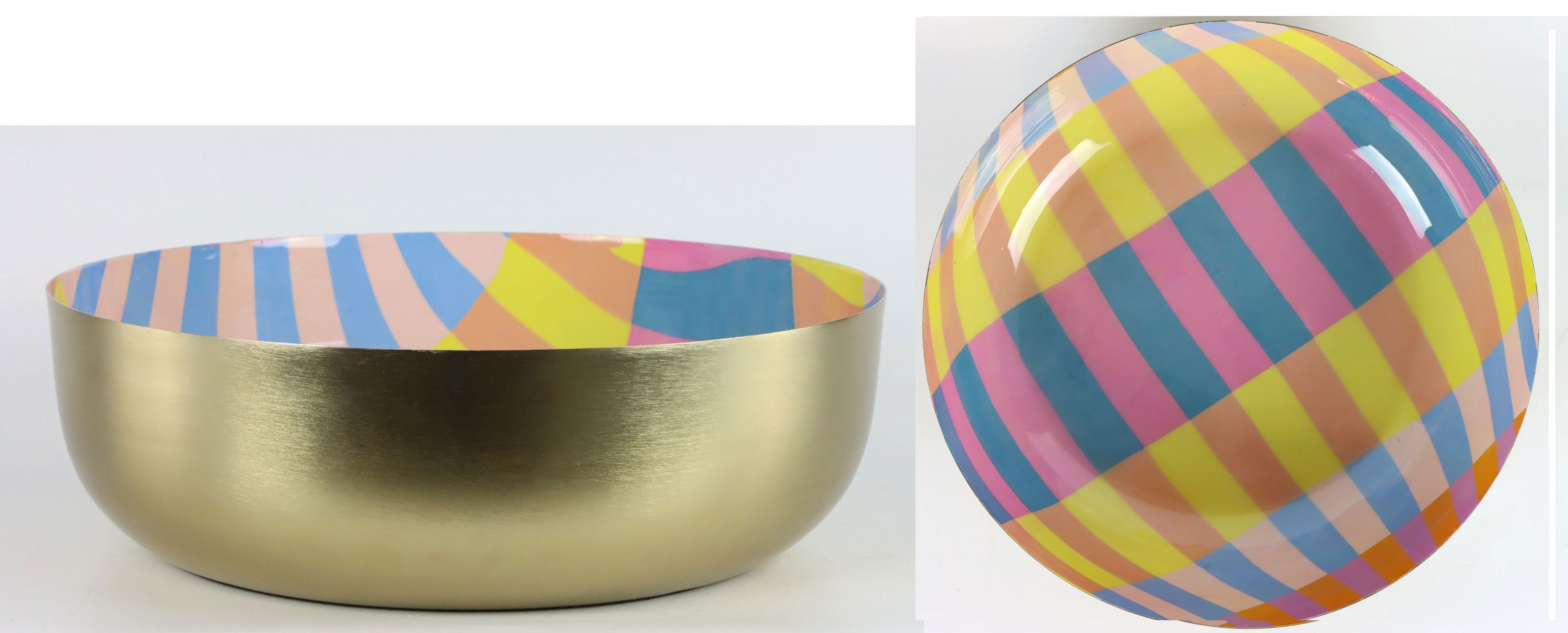 Plongez dans le monde du design intérieur stylé avec notre unique "COUPE GRAPHICS". Cette coupe décorative raffinée est un must-have pour tous ceux qui attachent de l'importance aux accents exceptionnels dans leurs espaces de vie et de travail. Avec son impressionnante surface dorée et ses lignes ondulées artistiquement intégrées dans des couleurs vives telles que le jaune, l'orange, le bleu et le rose, cette coupe allie élégance intemporelle et créativité moderne.