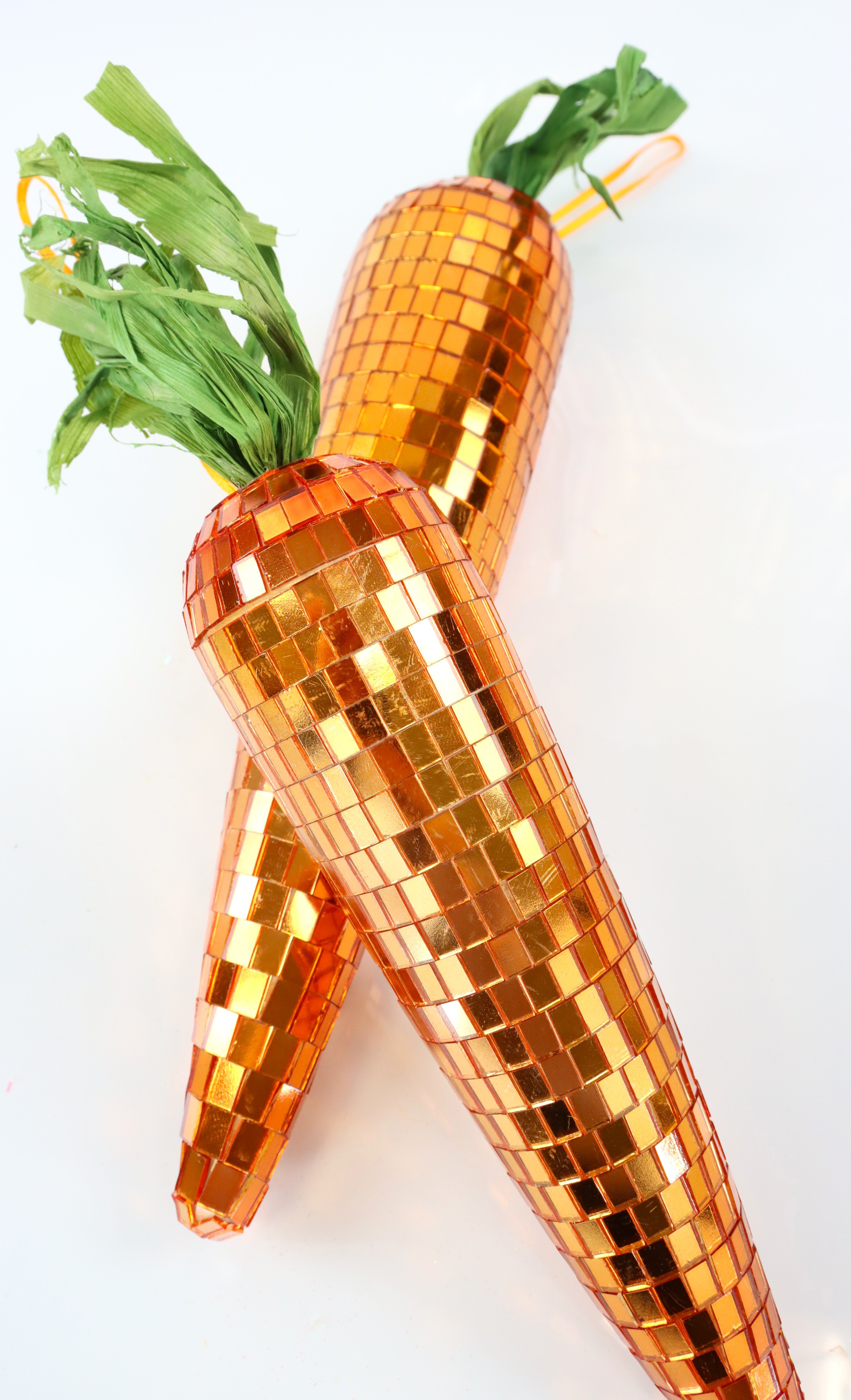 Le TRIO DE CAROTTES se compose de trois carottes de tailles différentes, artistiquement conçues et dotées d'éléments réfléchissants en forme de miroir. Les tailles d'environ 50 cm, 45 cm et 30 cm permettent une décoration flexible et individuelle de vos espaces d'exposition et de présentation. Vos clients seront enthousiasmés par les designs ludiques, mais néanmoins stylés, qui créent une ambiance joyeuse et vivante.