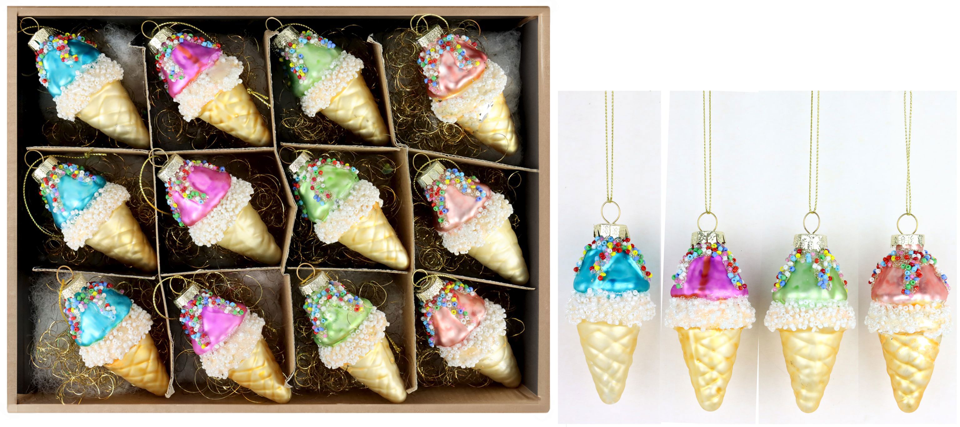 FR### BIJOUX EN VERRE DANS LE DISPLAY "SUNDAE" - Set de 12 cornets à glace colorés
