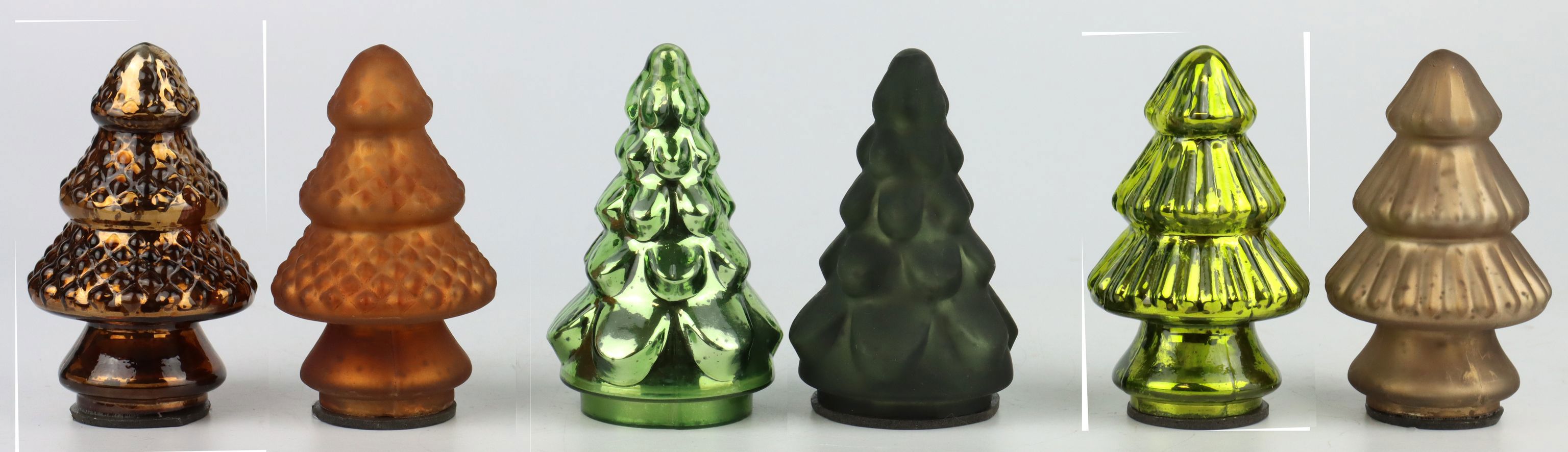 - Set de six arbres en verre fabriqués à la main dans des tons de vert variés