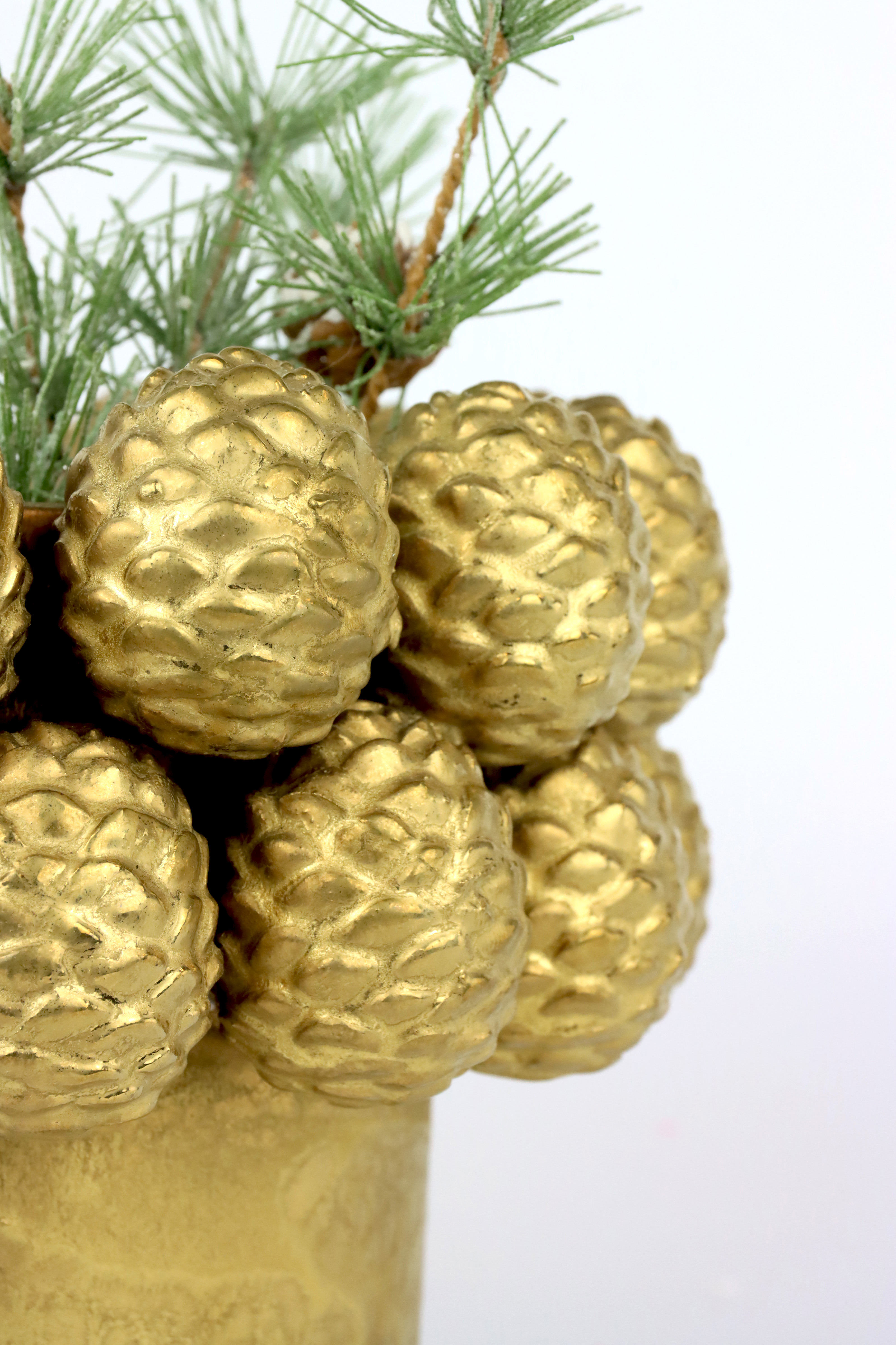 Avec sa taille compacte d'environ 20 cm, le cache-pot "La Pigna" trouve parfaitement sa place sur une étagère, un rebord de fenêtre ou tout autre endroit où il peut déployer son éclat doré. Le cache-pot a un design attrayant en forme de pomme de pin et confère ainsi à chaque environnement un sentiment de chaleur et de lien avec la nature. La couleur dorée souligne l'exclusivité et l'élégance du produit et apporte une touche particulière à chaque pièce.