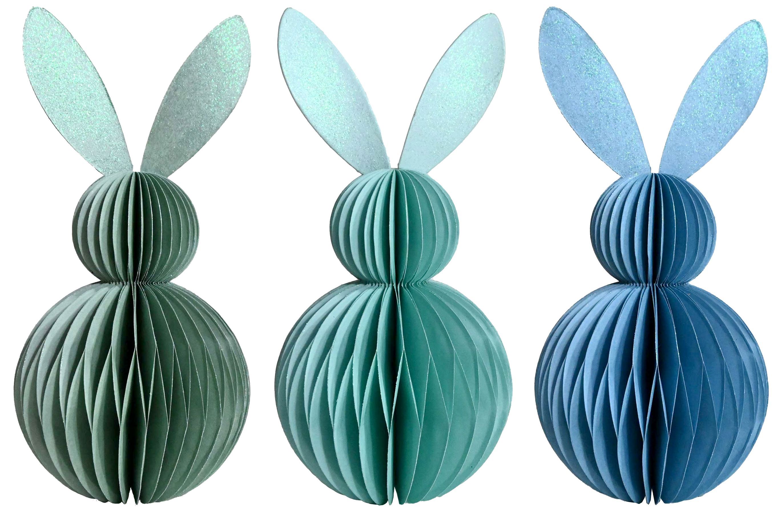 - Lapins décoratifs en papier d'environ 22 cm avec structure en nid d'abeille