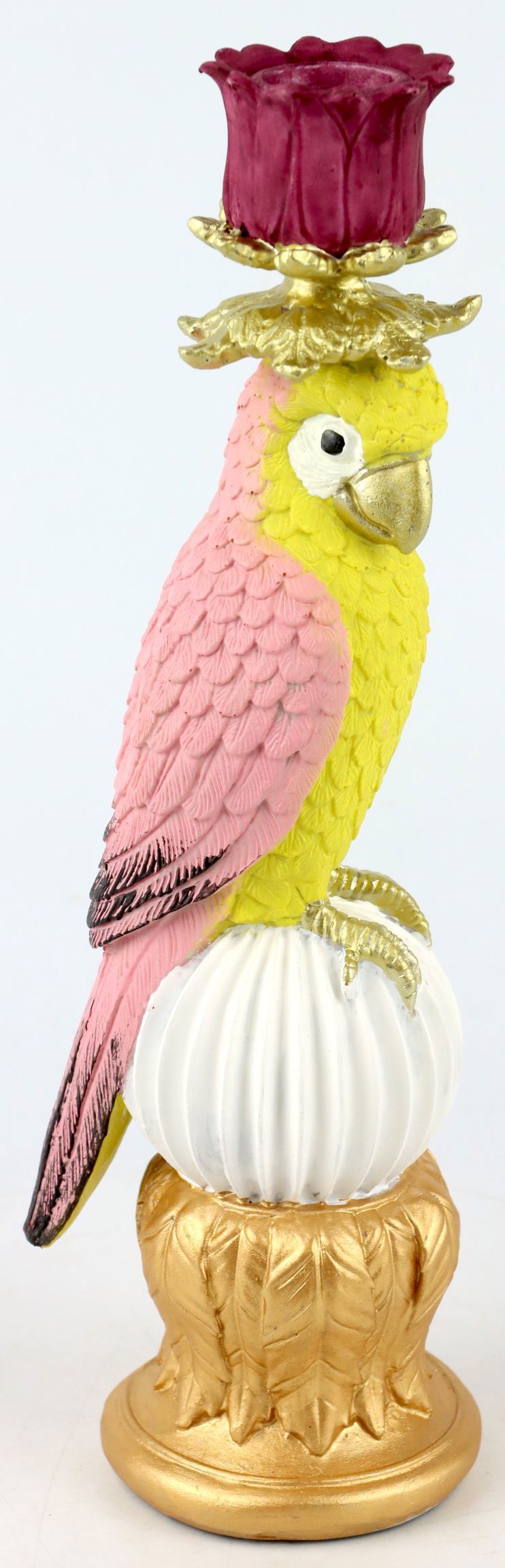 Il nostro candeliere "Paradise Parrot" in un accattivante colore giallo è realizzato in ceramica di alta qualità e promette non solo bellezza estetica, ma anche durata nel tempo. La riuscita combinazione di ceramica, poliresina e metallo garantisce un design stabile e attraente che valorizzerà qualsiasi salotto, showroom o negozio. Con un'altezza di circa 28 cm, è ideale come elemento decorativo centrale sul tavolo, su una mensola o sulla mensola del camino.